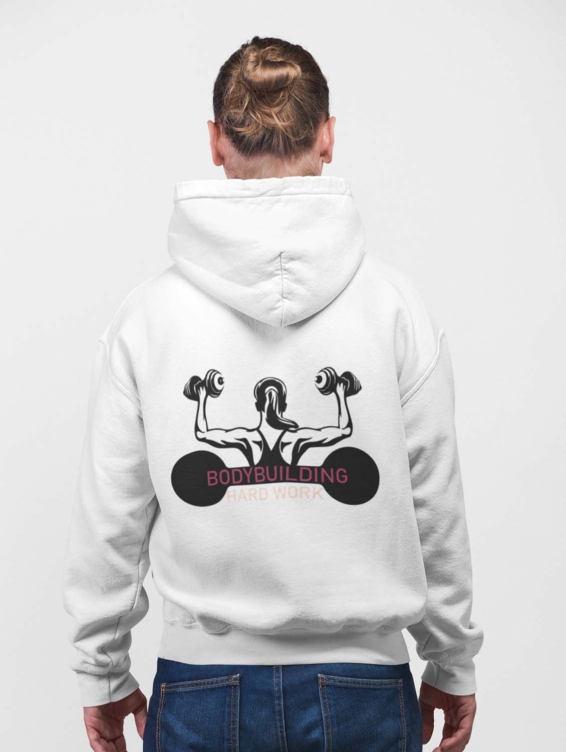 Bodybuilding Hardwork, A Girl Lifts Dumble (Cherry, Peech)printed artswear white hoodies for winter casual wear specially for Men