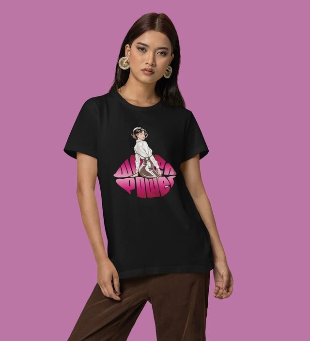 Bold Charm: Woman Power Graphic Printed Black T-Shirt