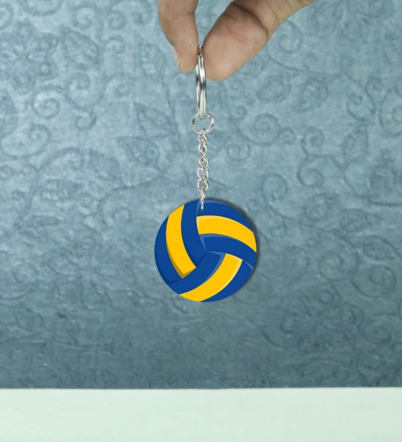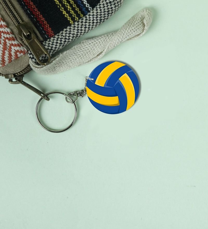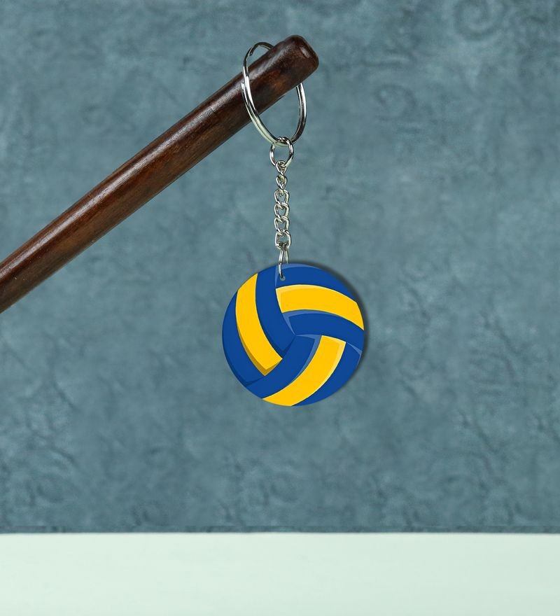 Add a sporty touch to your style with this Pack of 2 Printed Round Keychains. Featuring bold designs inspired by shot put, ping pong, baseball, and volleyball, they