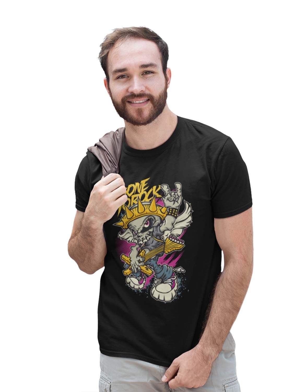 Bone To Rock Black Round Neck Cotton Half Sleeved T-Shirt with Printed Graphics