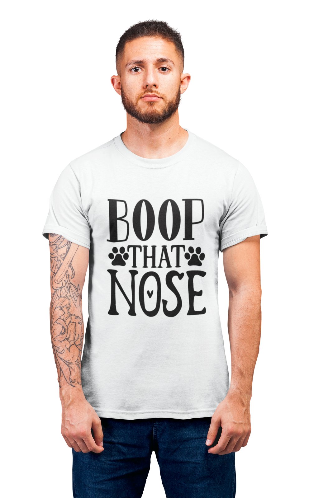 Boop that nose - printed stylish White cotton tshirt- tshirts for men