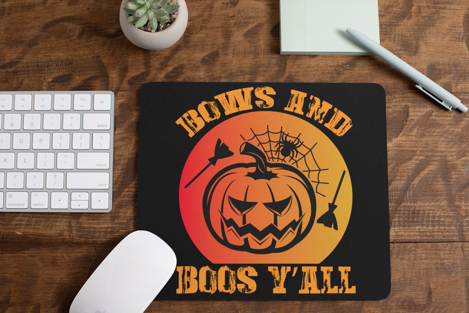 Bows And Boos Y'all-Scary Pumpkin-Halloween Theme Mousepad