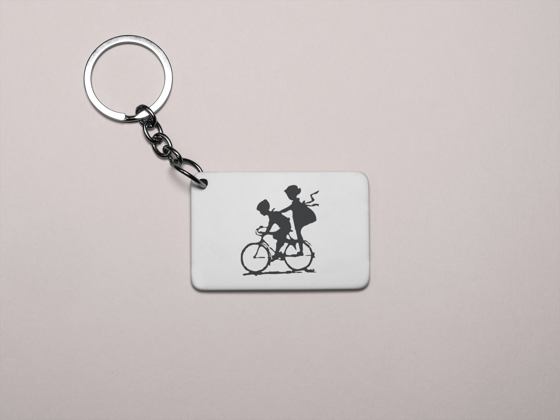 Boy and girl cycling toghether - Printed Keychain