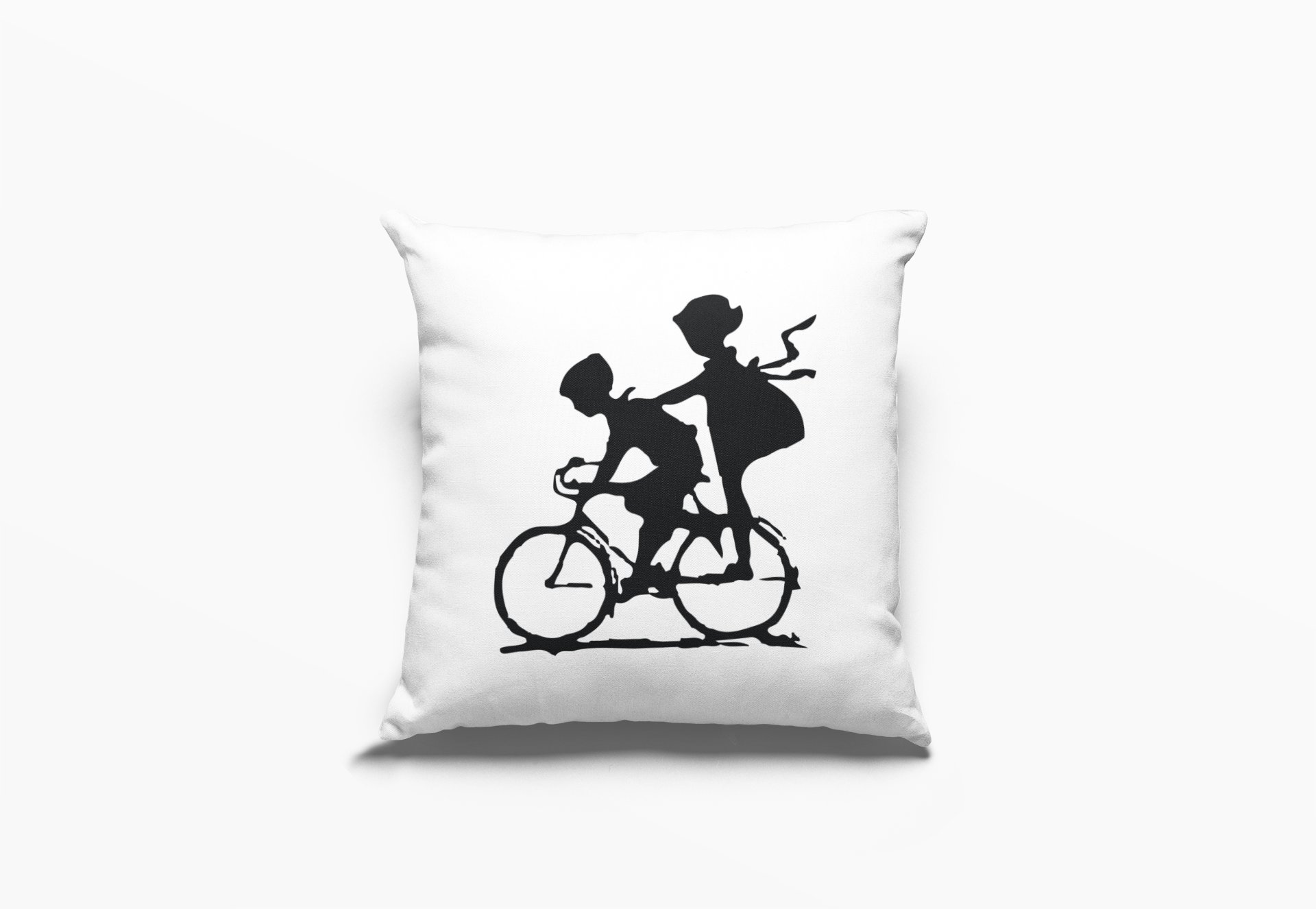 Boy and girl cycling toghether - Printed Pillow Covers (Pack Of Two)