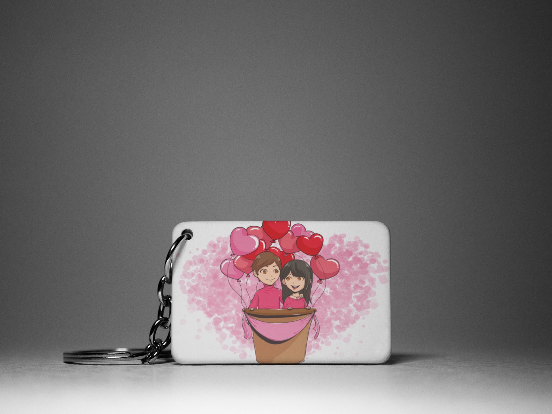 Boy And Girl In Hot Air Balloon-White -Valentine's Special Keychains(Pack Of 2)