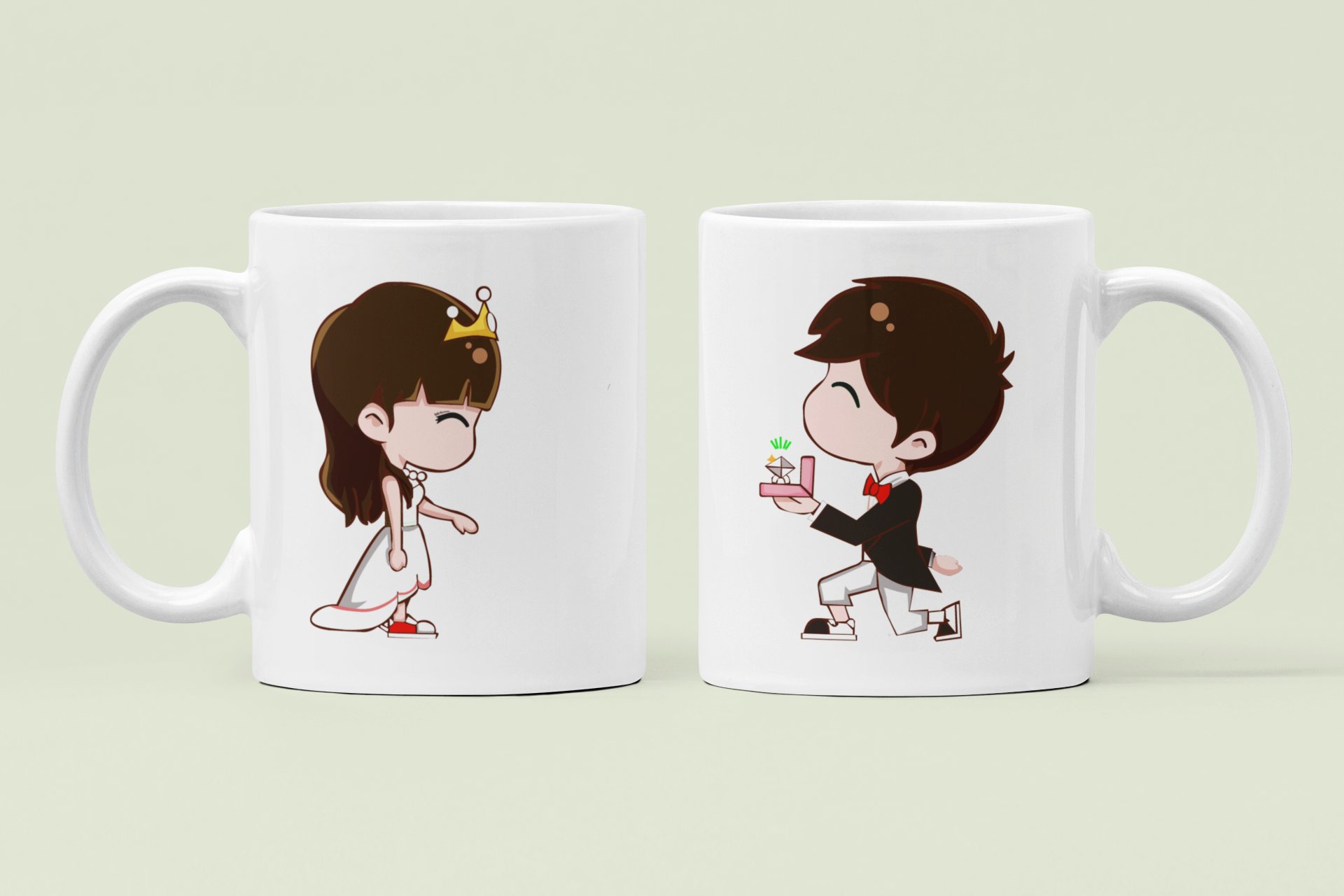 Boy proposing girl - Printed Coffee Mugs For Valentine's Day(Pack Of 2)