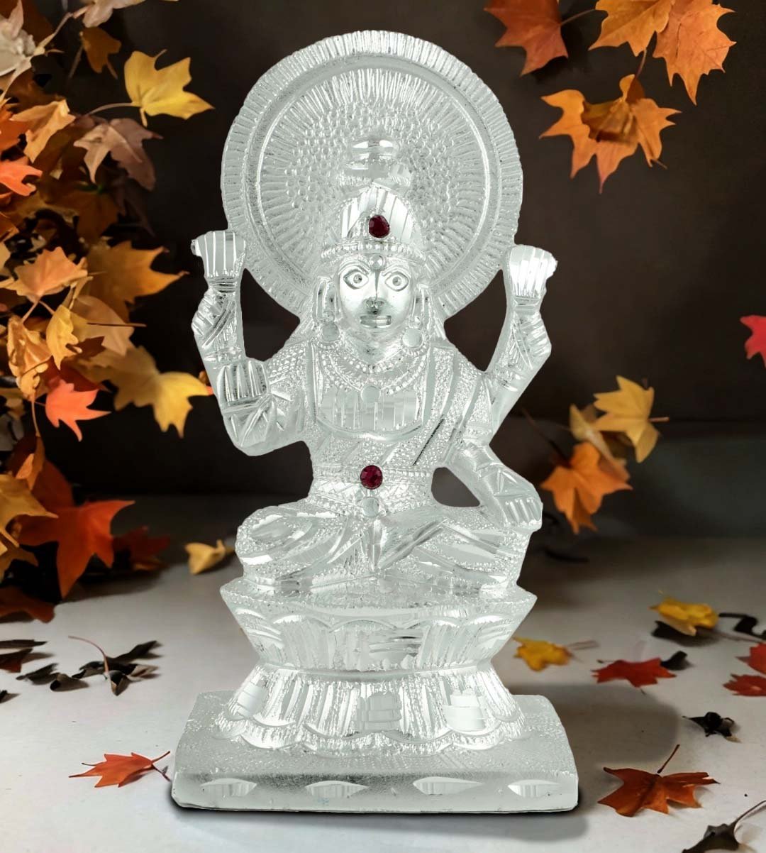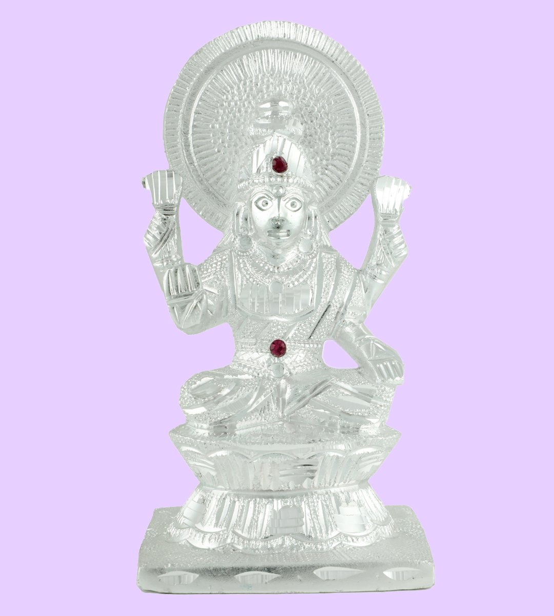 Brass metal silver goddess lakshmi idol/ murti (Red gemstones) for home and puja ghar