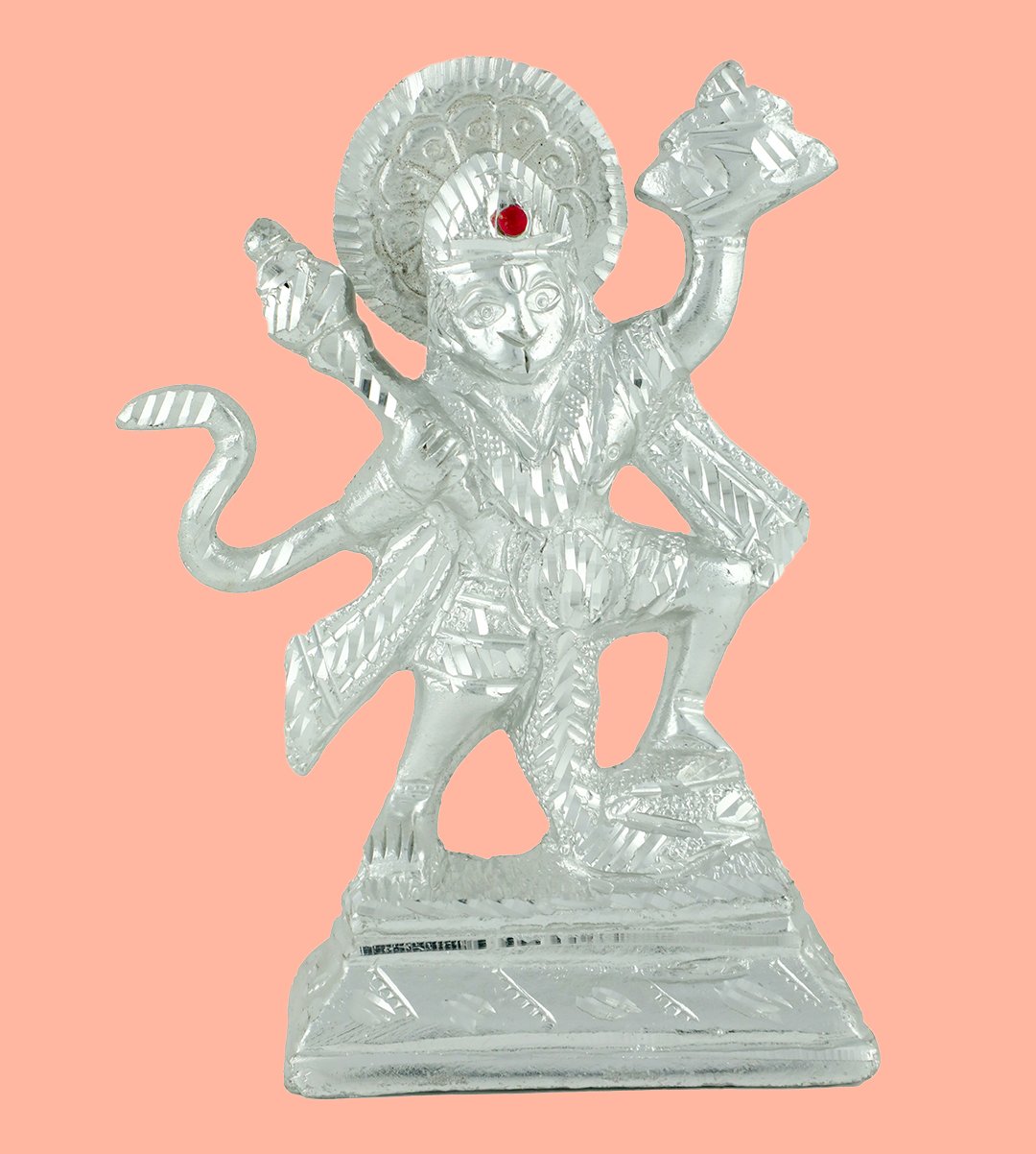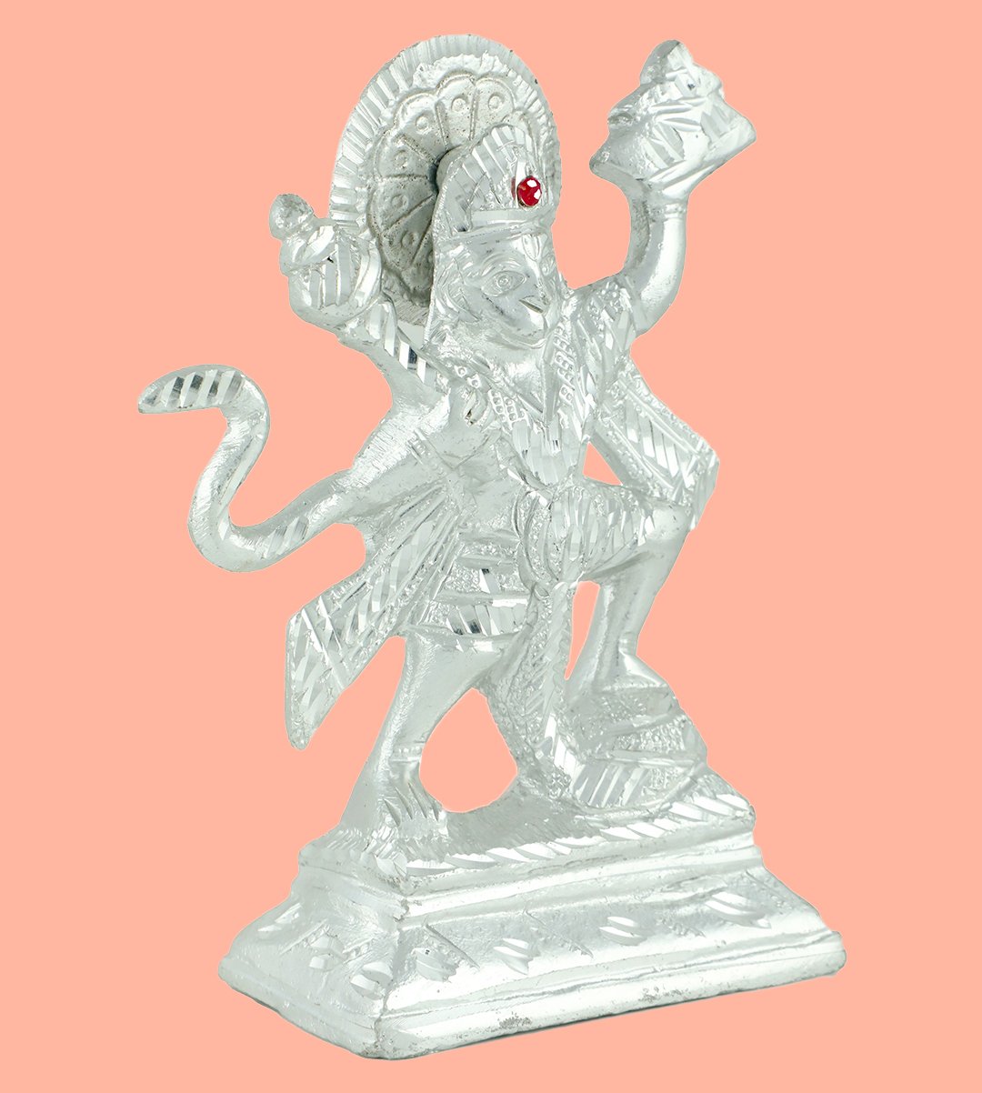 Brass metal silver standing Lord Hanuman idol with a circle chakra for home & puja ghar