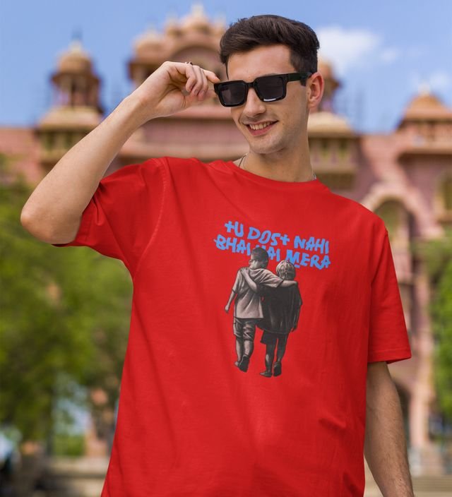 Brotherhood Red Round Neck Cotton Half Sleeved Men T-Shirt with Printed Graphics