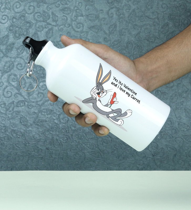 Bunny Loves carrot: Aluminium Sipper Bottle With Holding Hook, Best Gift For Singles