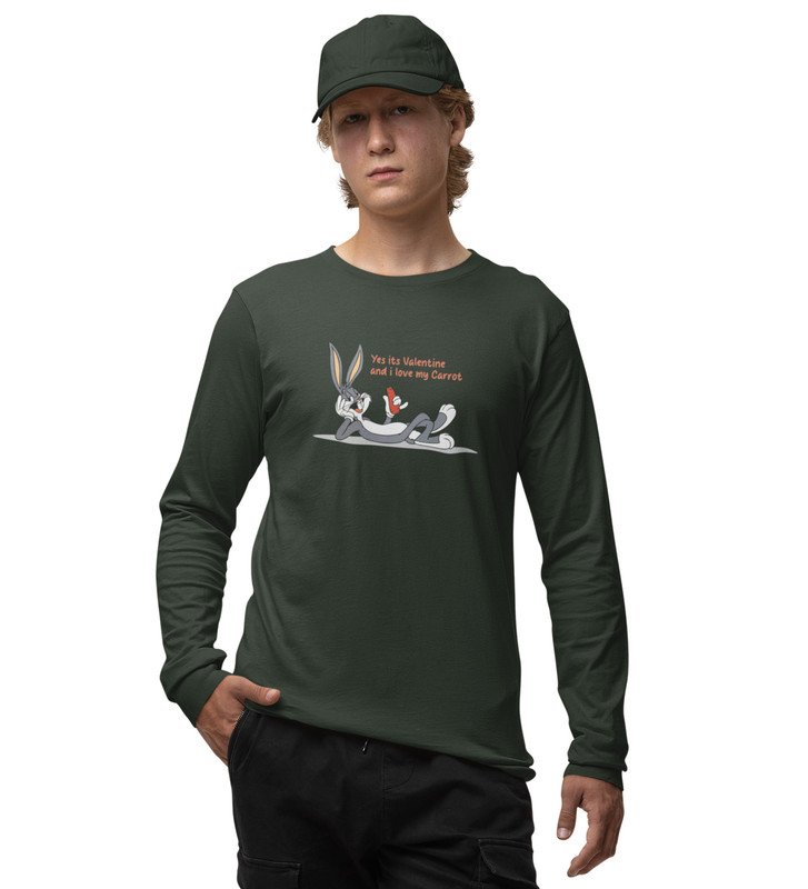 Bunny Loves carrot: (green) Full Sleeve T-Shirt For Singles