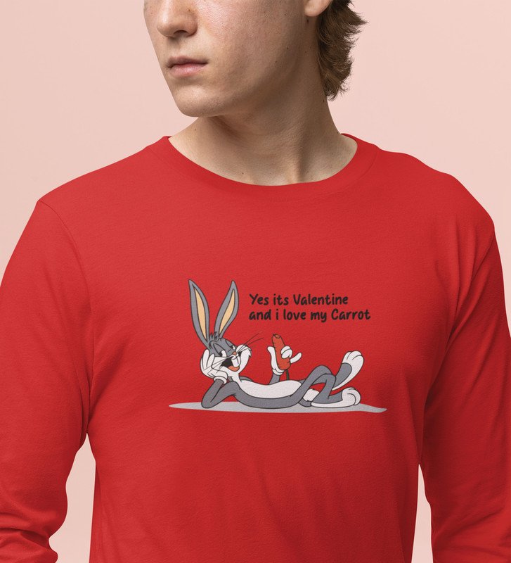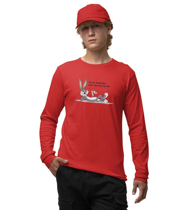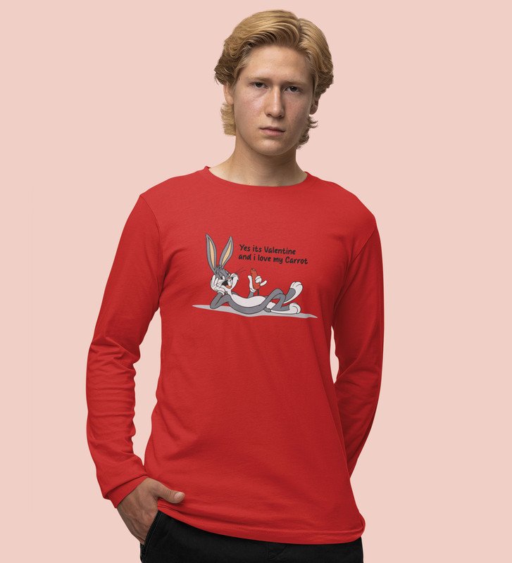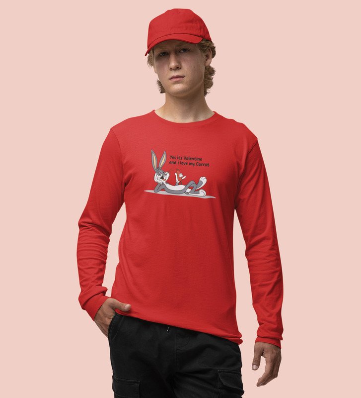 Bunny Loves carrot: (red) Full Sleeve T-Shirt For Singles