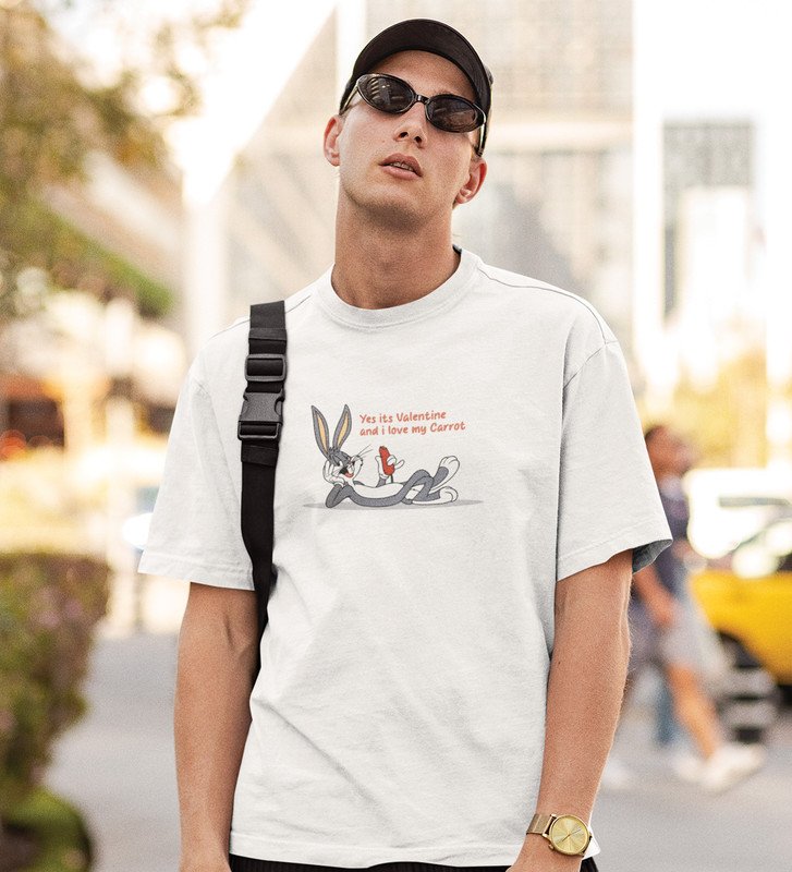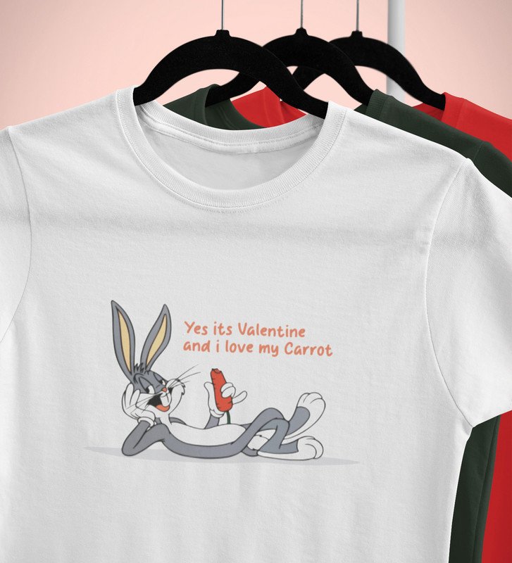 Bunny Loves carrot: (white) T-Shirt For Singles