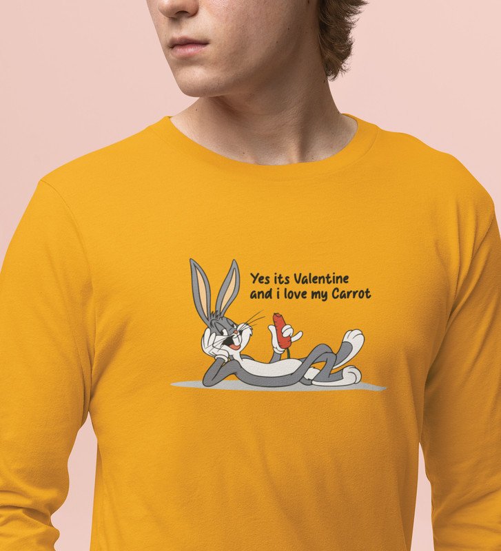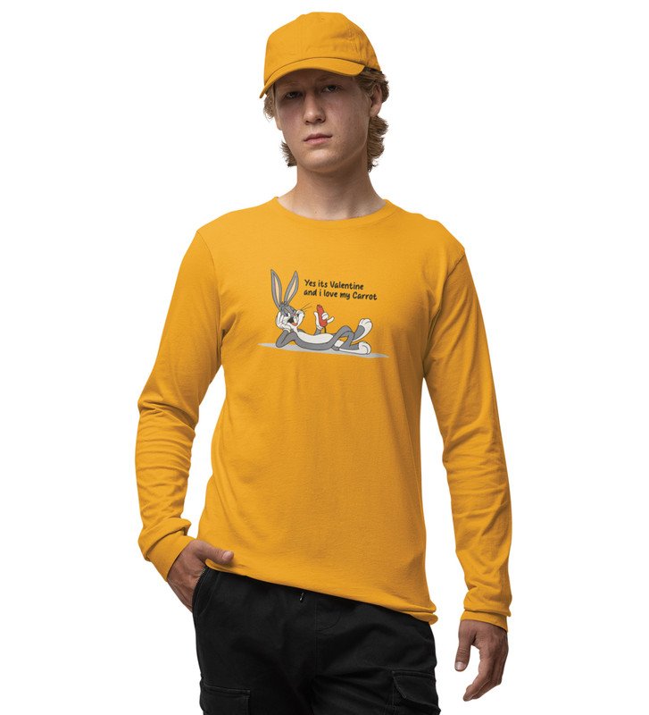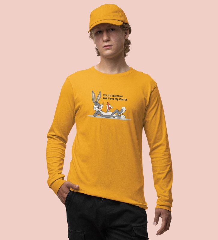 Bunny Loves carrot: (yellow) Full Sleeve T-Shirt For Singles