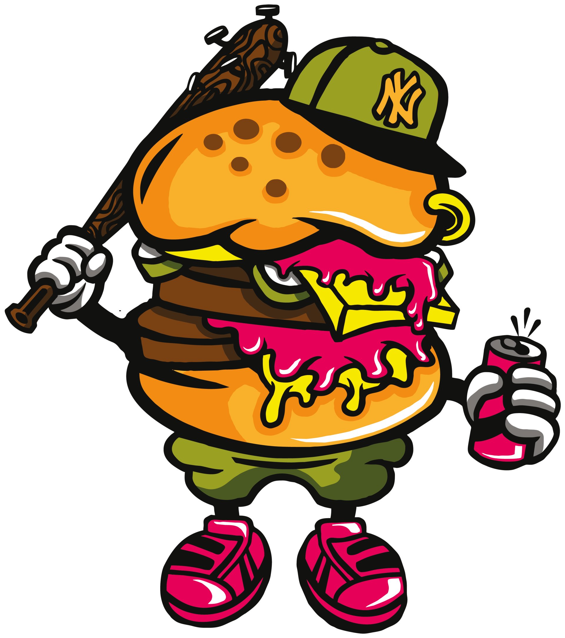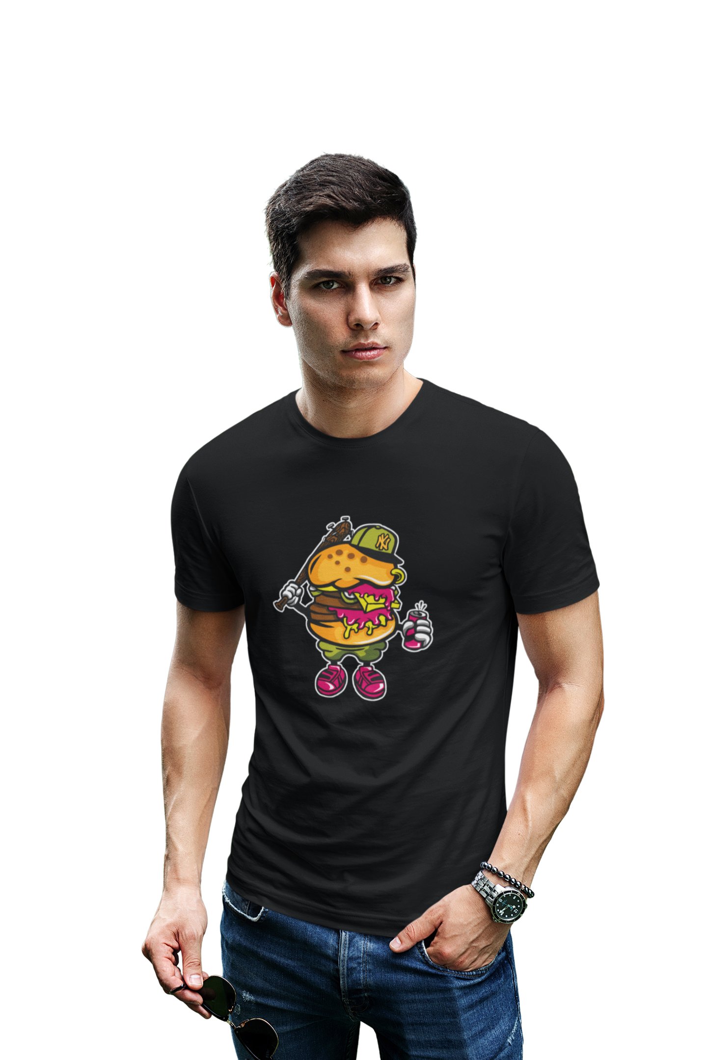 Burger with bat -round crew neck cotton tshirts for men