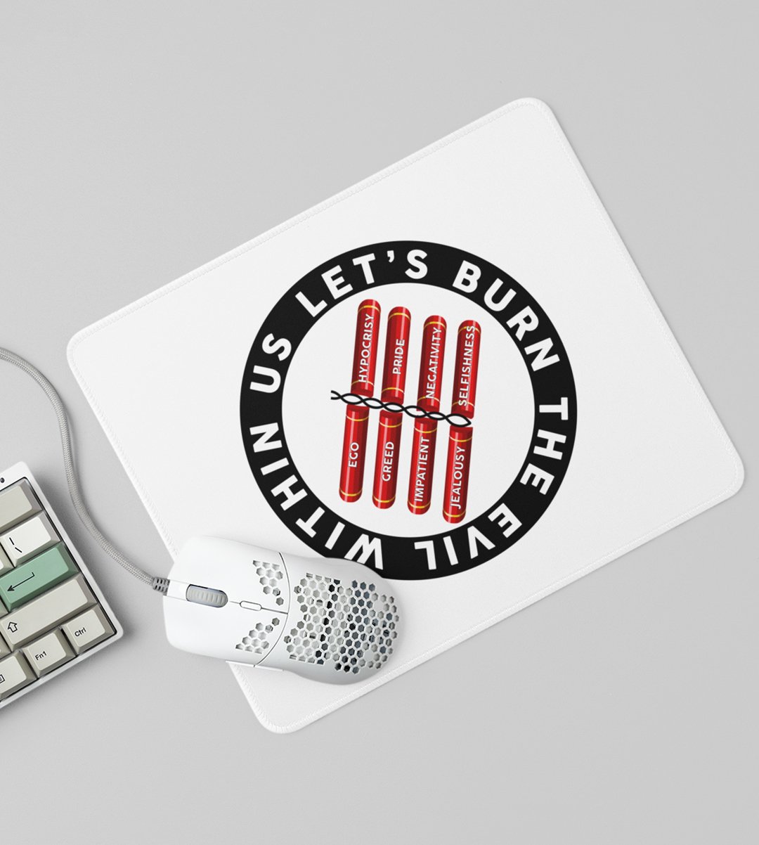 Inspire positivity and change in your workspace with our Burn the Evil Within Us Mouse Pad. It carries a profound message of self-improvement.
