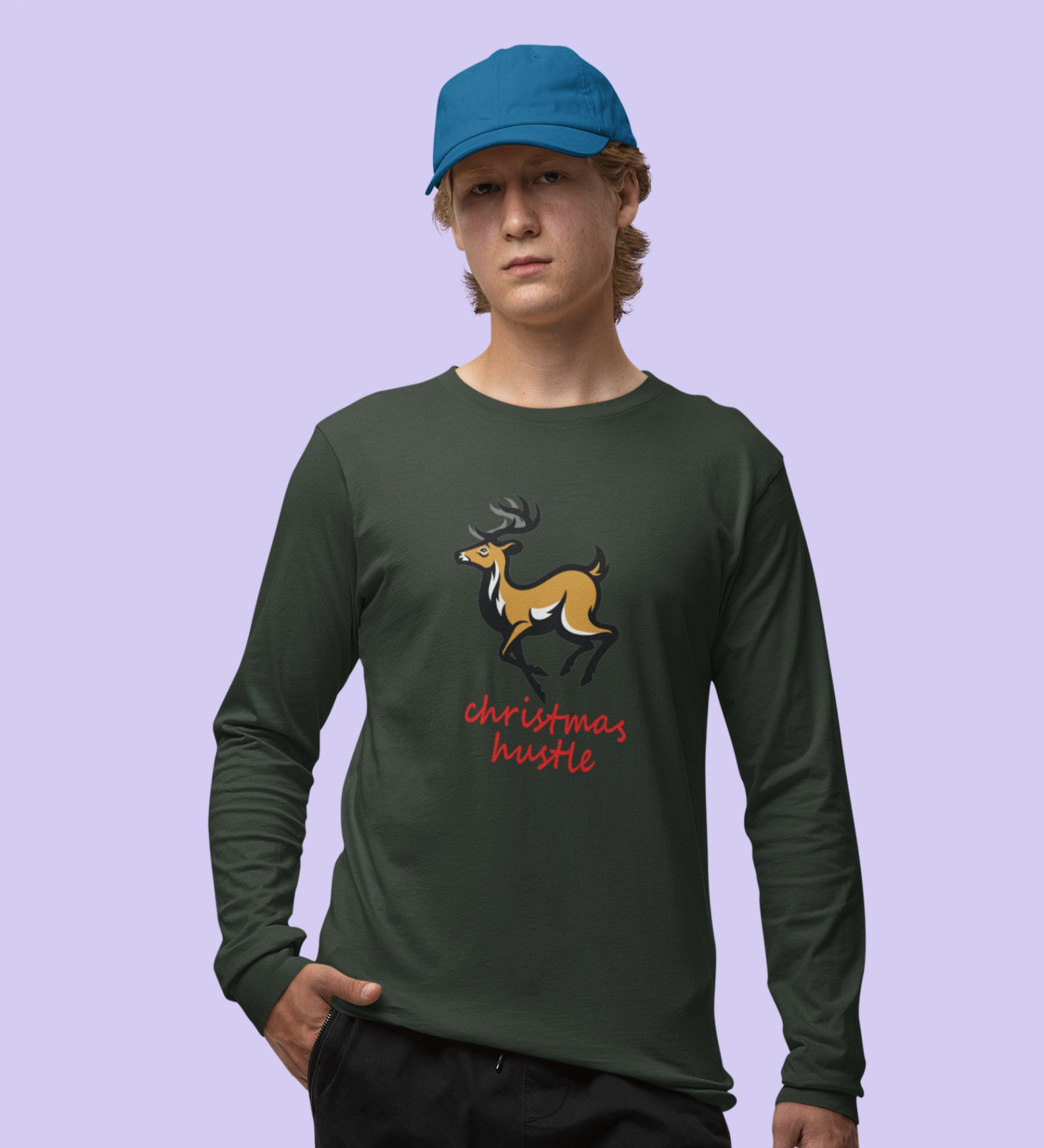Busy Reindeer: Best DesignerFull Sleeve T-shirt Green Best Gift For Boys Girls