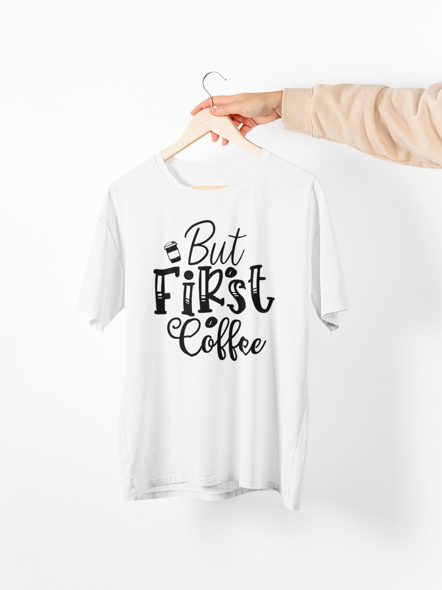 But first Coffee - White - printed t shirt - comfortable round neck cotton.