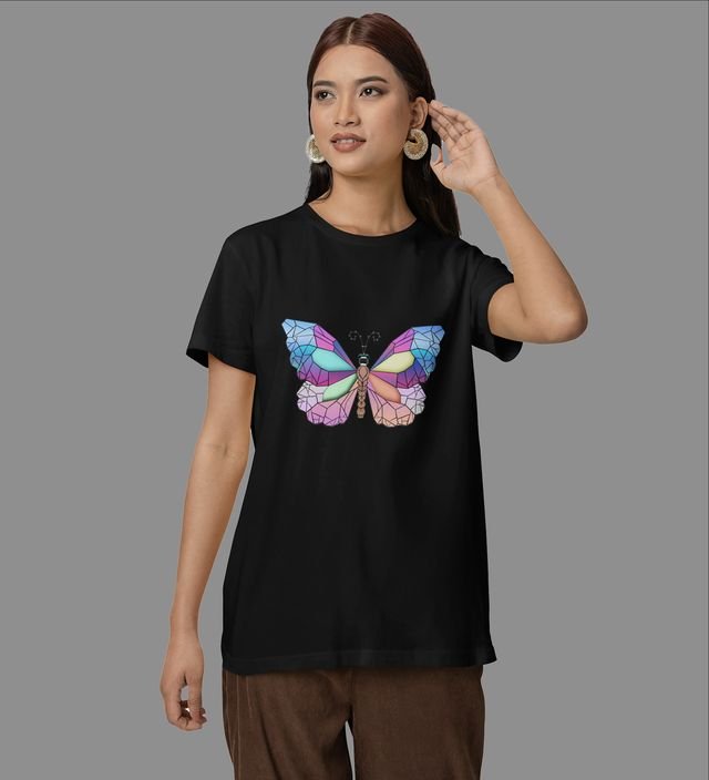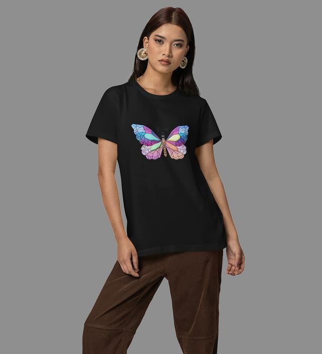 Butterfly Dreams Unfold: Graphic Printed Black T-Shirt