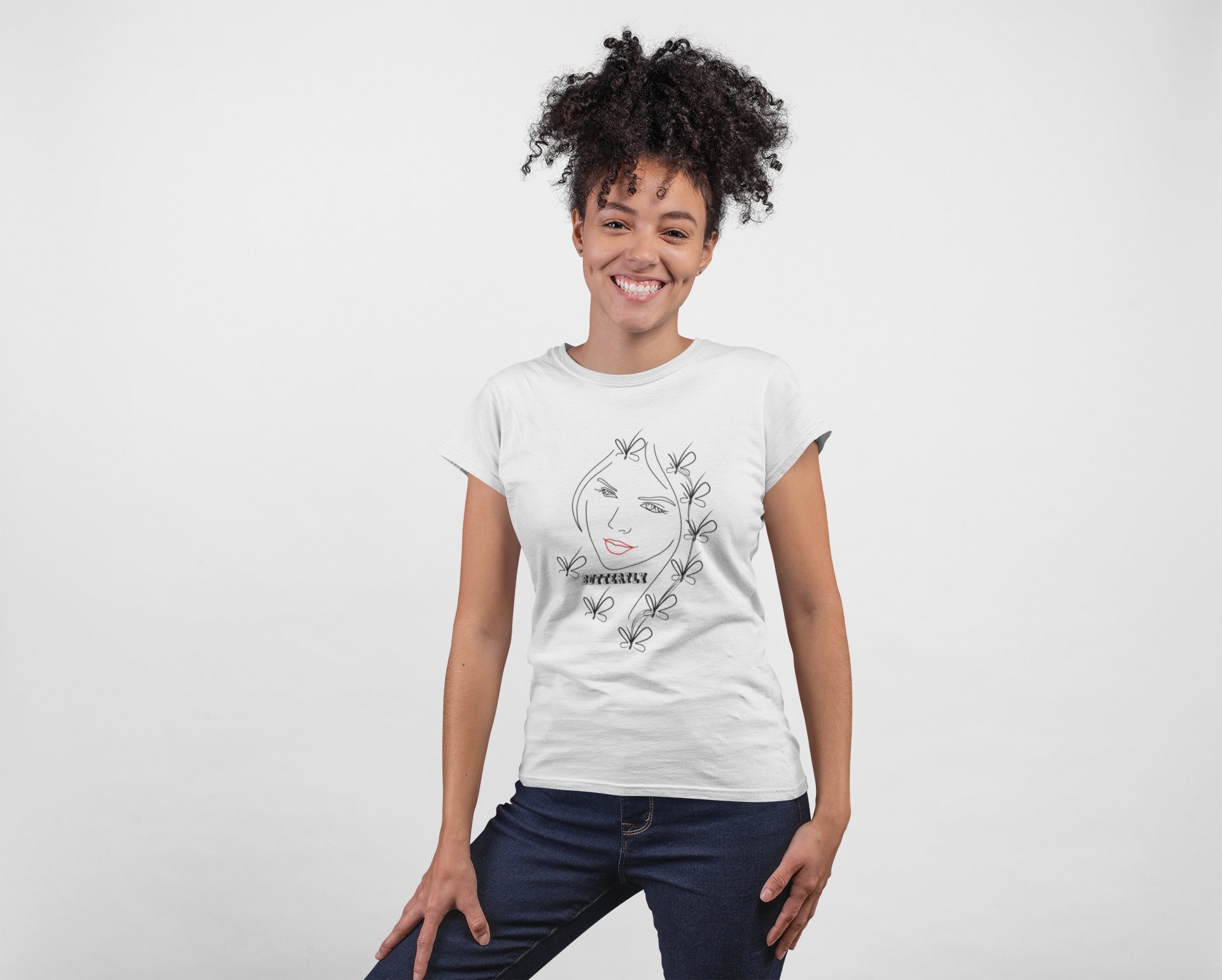 Butterfly - Line Art for Female - Half Sleeves T-shirt