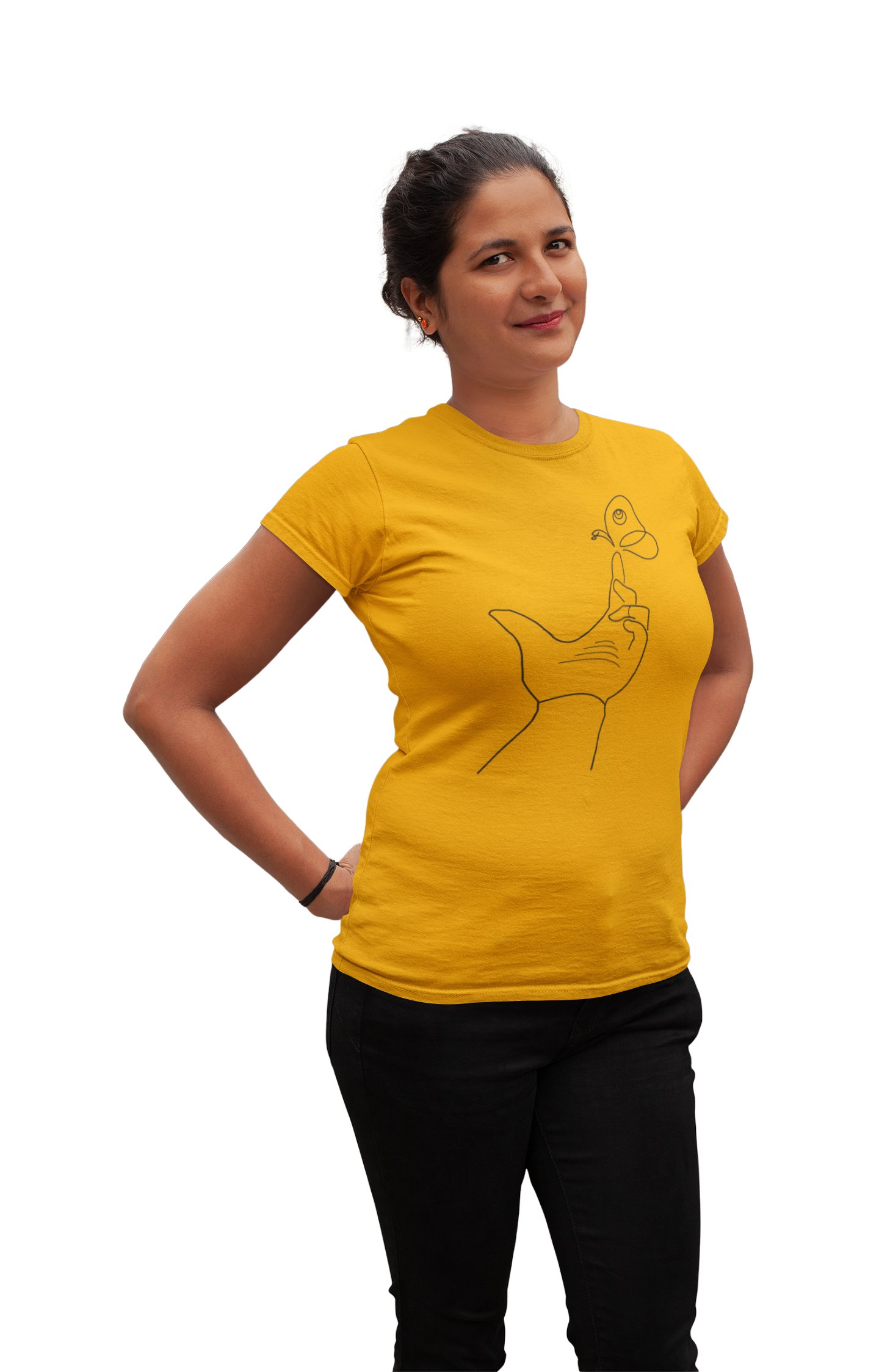 Butterfly on Finger - Line Art for Female - Half Sleeves T-shirt