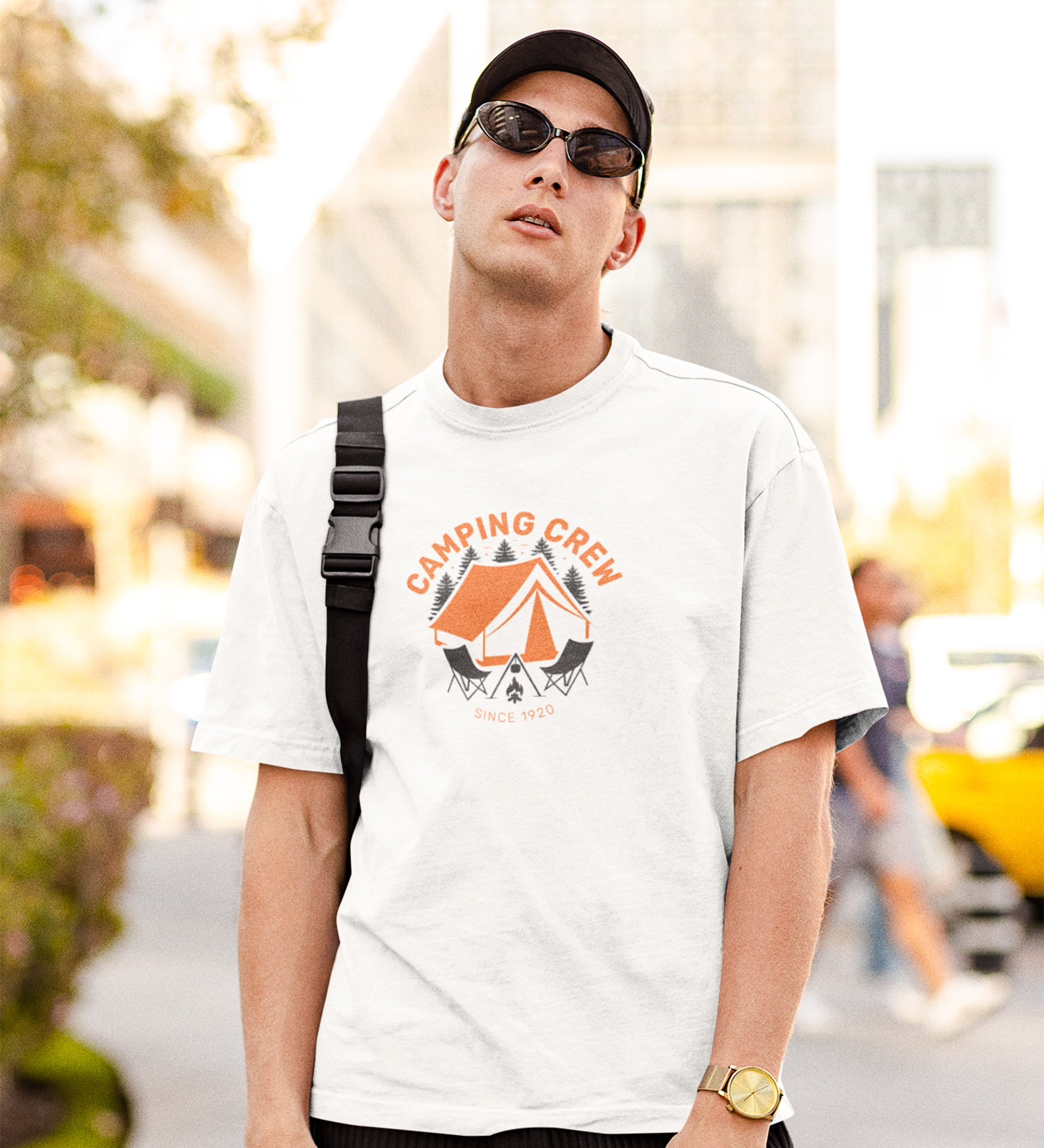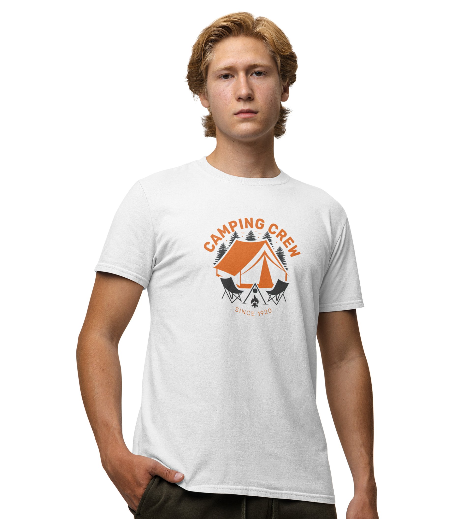 JD.TRENDS Camping Crew White Round Neck Cotton Half Sleeved Men's T-Shirt with Printed Graphics