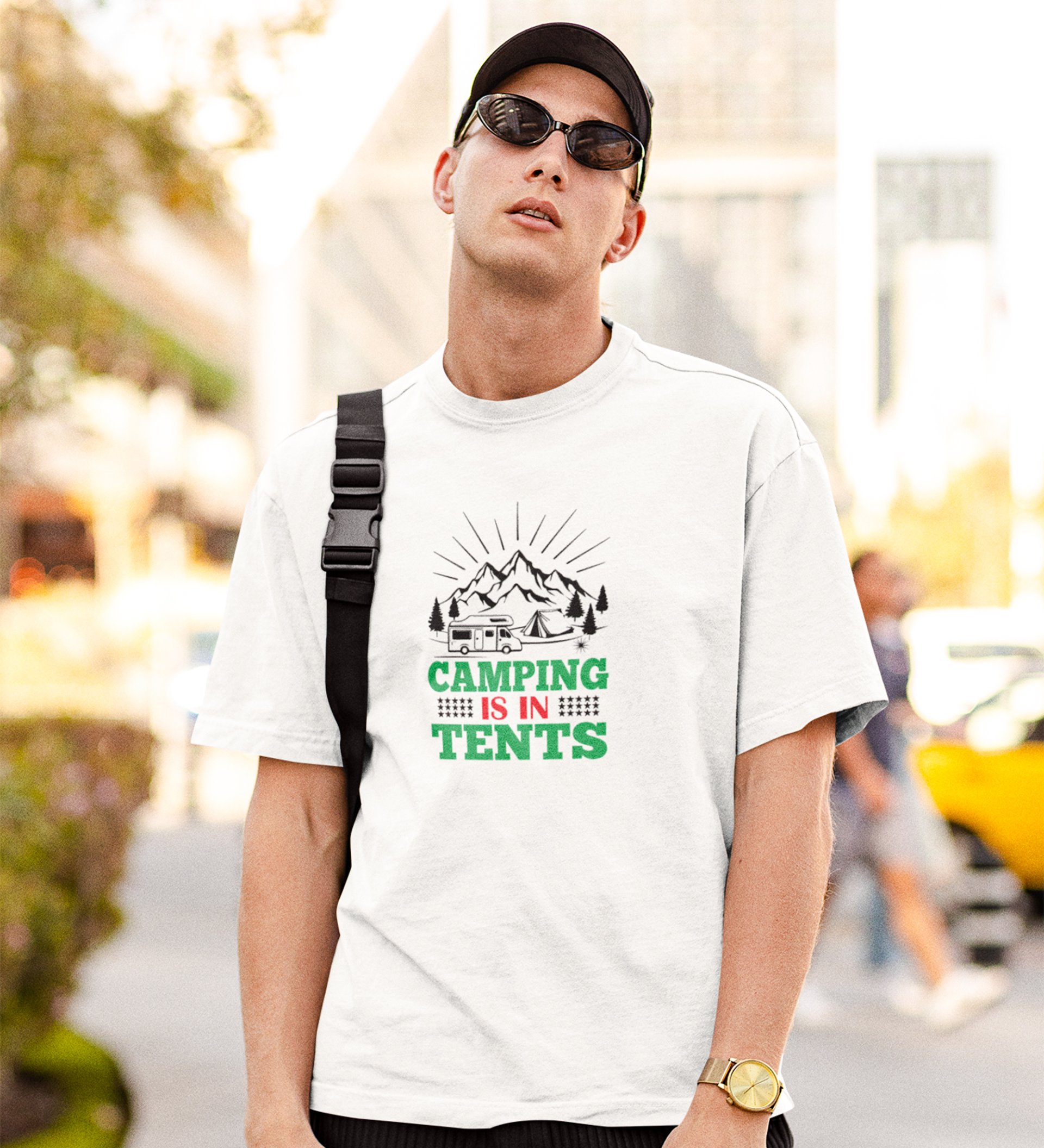 JD.TRENDS Camping Tents White Round Neck Cotton Half Sleeved Men's T-Shirt with Printed Graphics