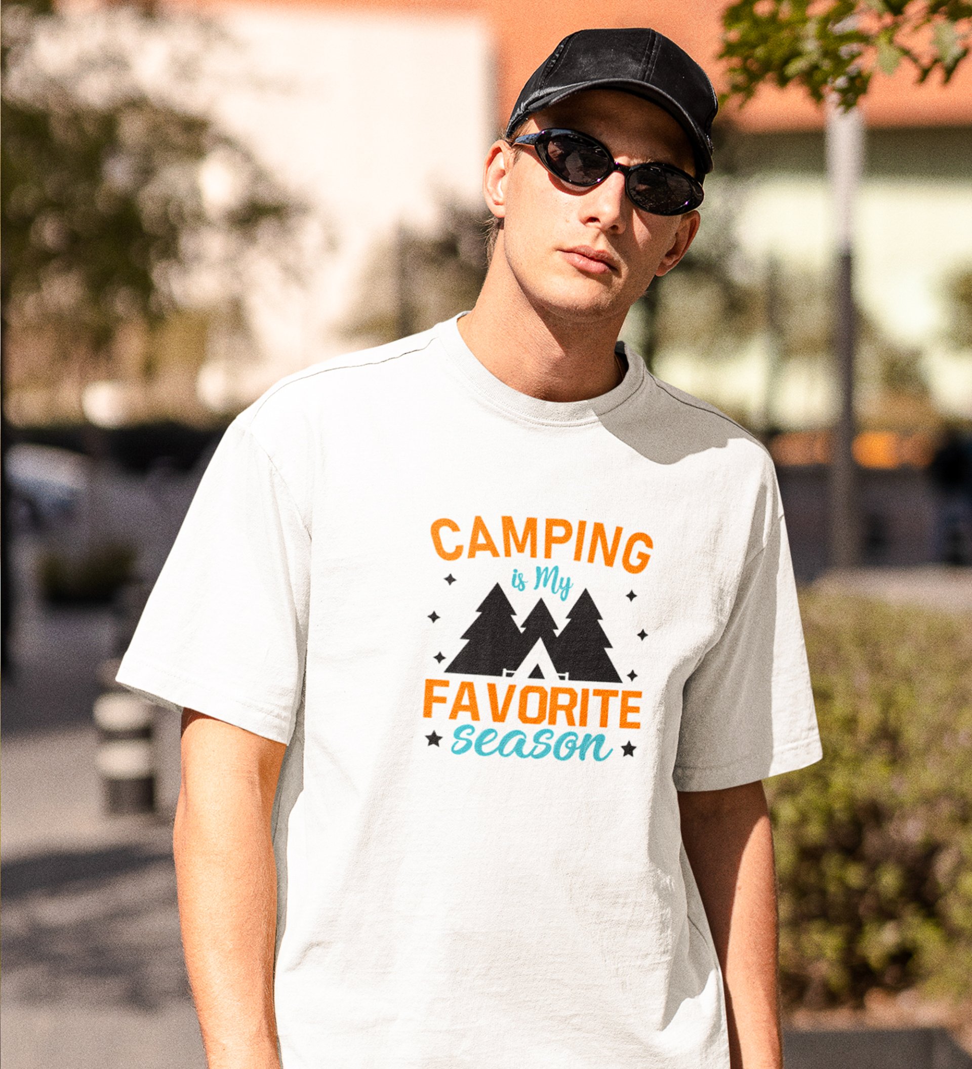 JD.TRENDS The Camping Season White Round Neck Cotton Half Sleeved Men's T-Shirt with Printed Graphics
