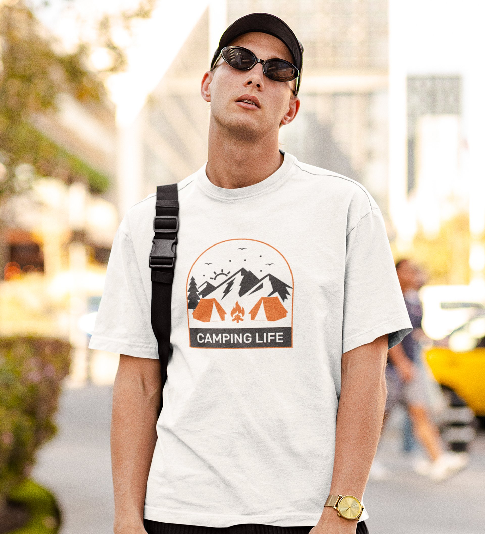 JD.TRENDS Camping Life (White) White Round Neck Cotton Half Sleeved Men's T-Shirt with Printed Graphics