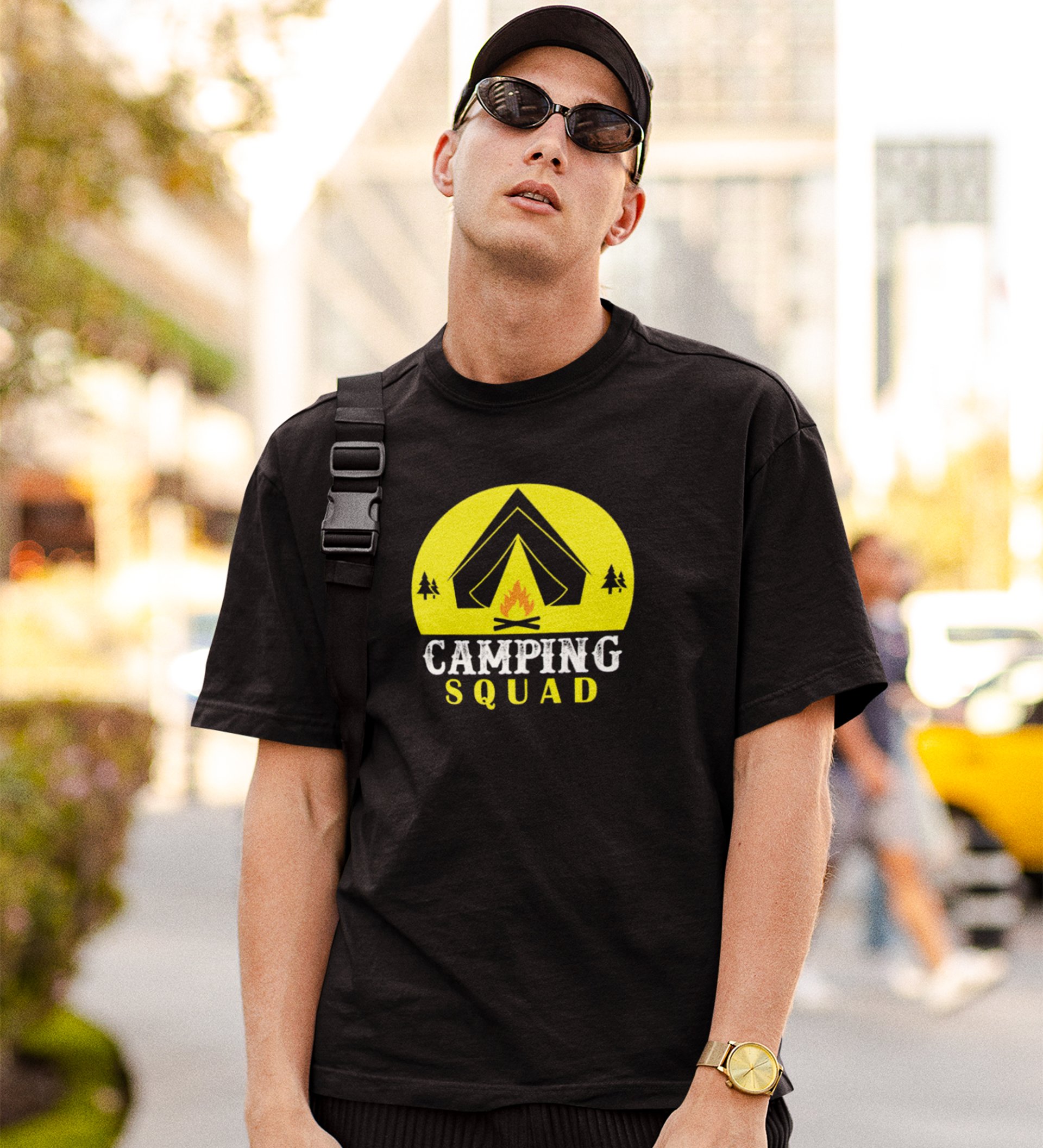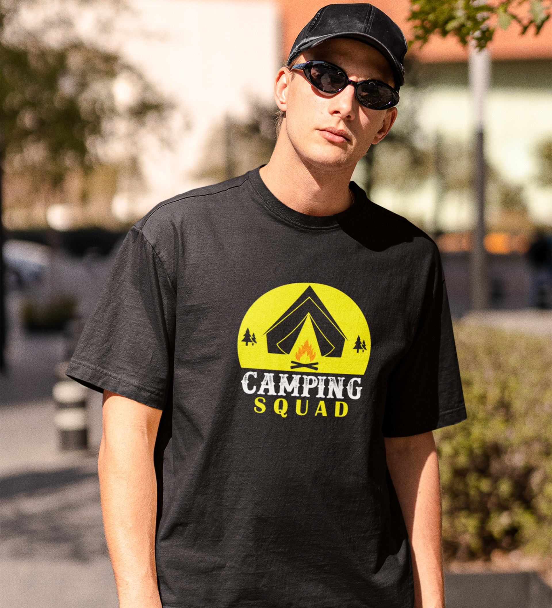 JD.TRENDS Camping Squad (Campfire) Black Round Neck Cotton Half Sleeved Men's T-Shirt with Printed Graphics