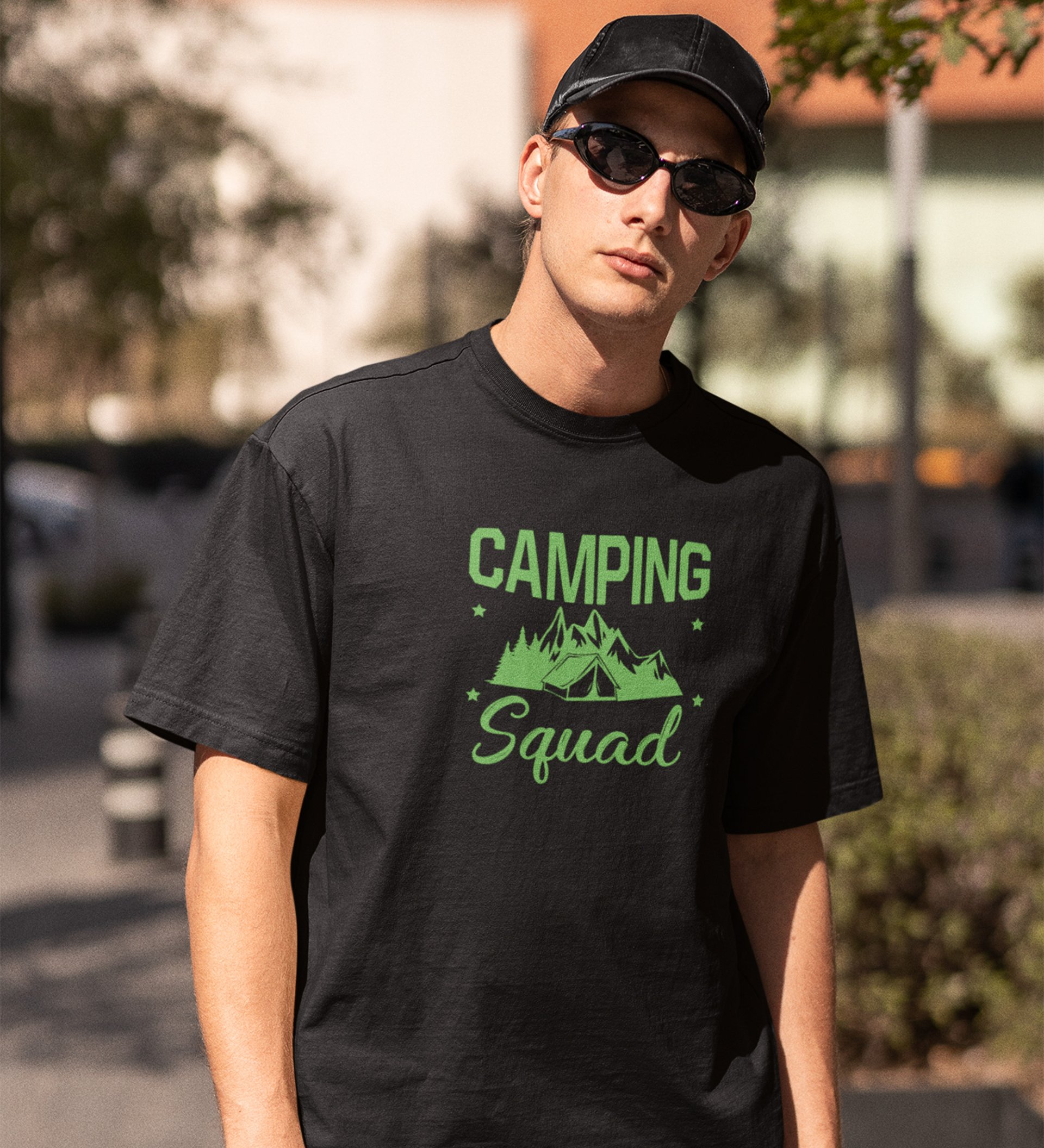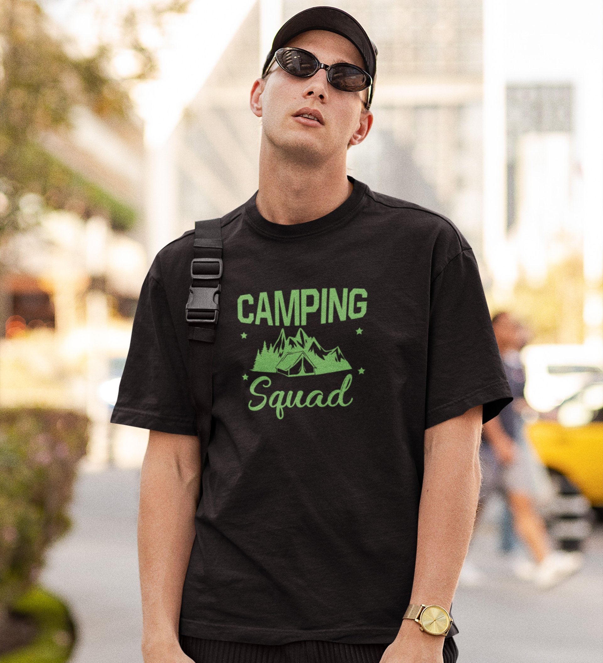 JD.TRENDS Camping Squad Black Round Neck Cotton Half Sleeved Men's T-Shirt with Printed Graphics