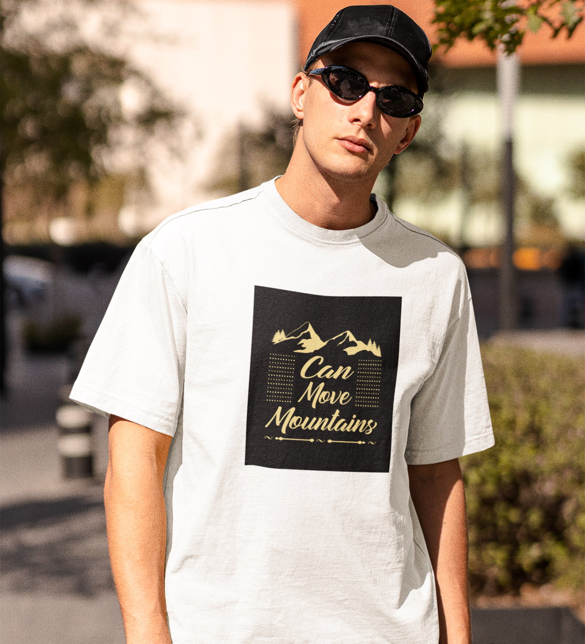 JD.TRENDS Move Mountains White Round Neck Cotton Half Sleeved Men's T-Shirt with Printed Graphics