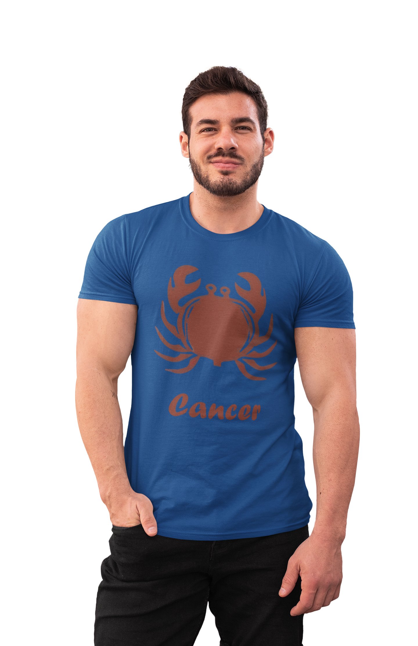 Cancer (BG Brown)(Blue T) - Printed Zodiac Sign Tshirts - Made especially for astrology lovers people