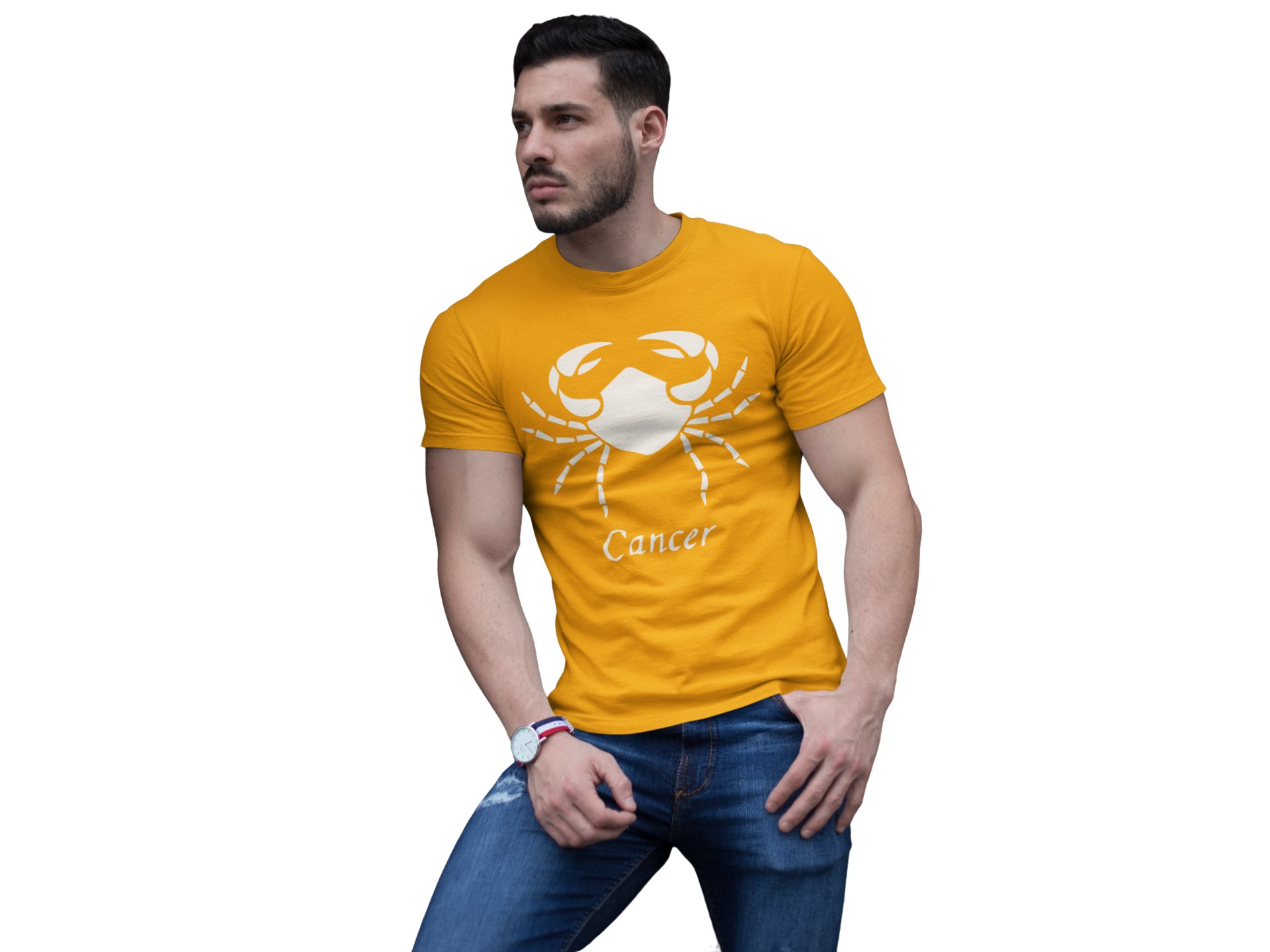 Cancer (BG white) (Yellow T) - Printed Zodiac Sign Tshirts - Made especially for astrology lovers people
