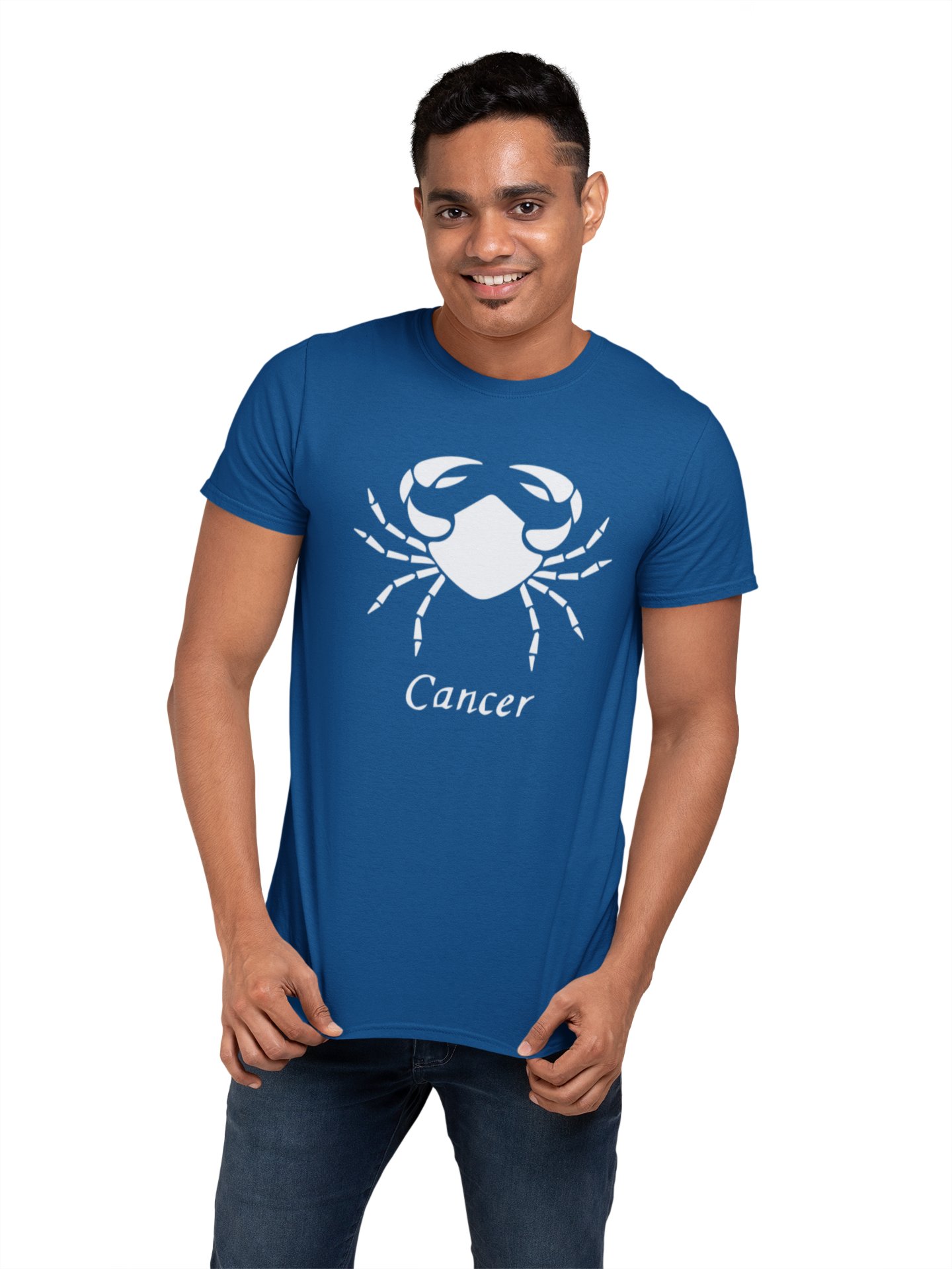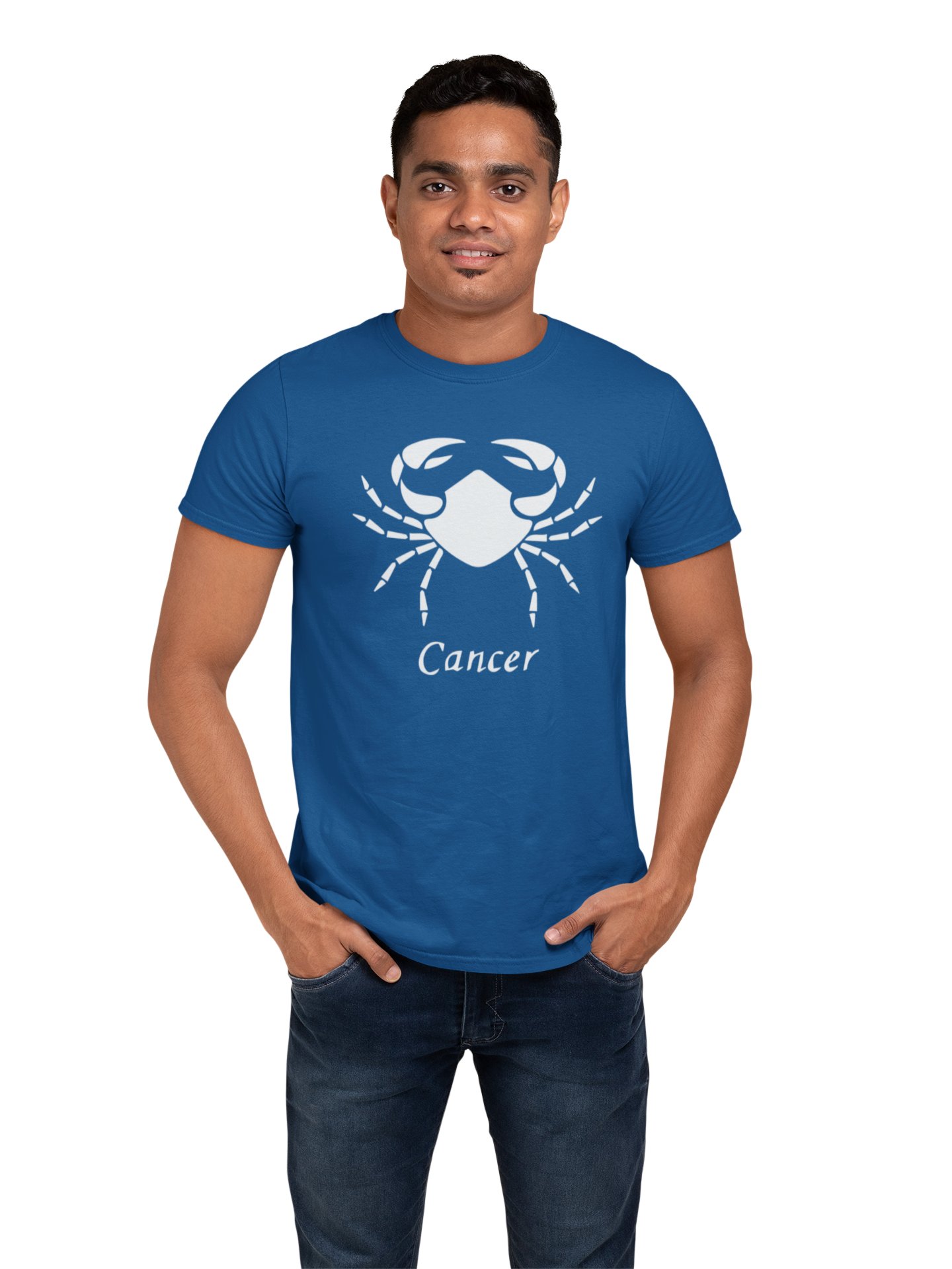 Cancer (BG white)(Blue T) - Printed Zodiac Sign Tshirts - Made especially for astrology lovers people