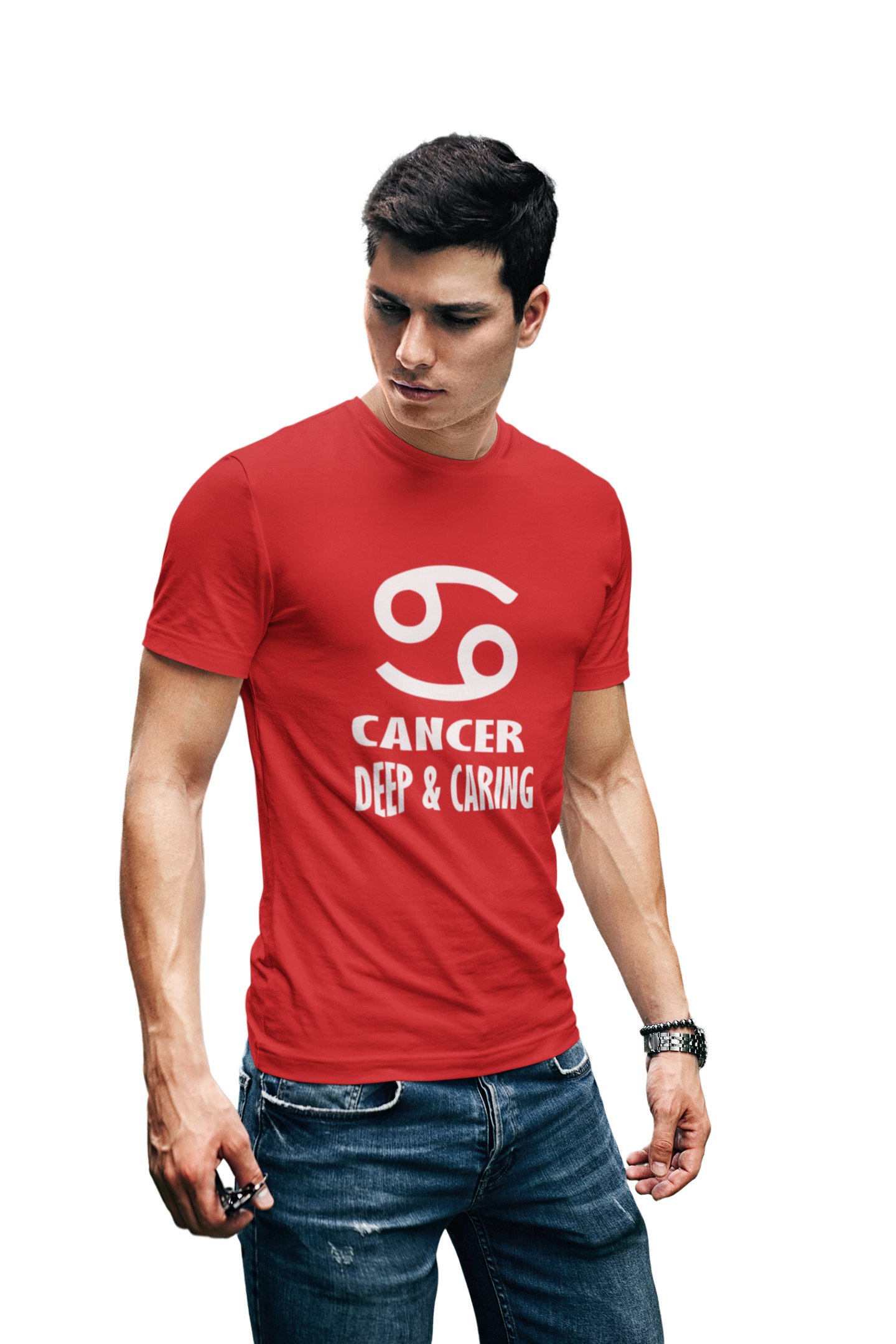 Cancer, deep and caring (Red T) - Printed Zodiac Sign Tshirts - Made especially for astrology lovers people