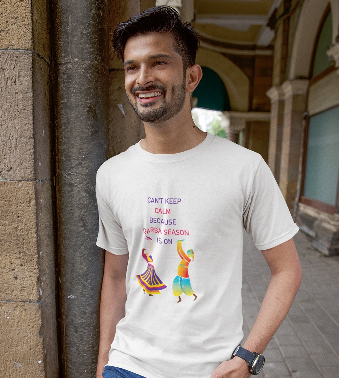 Can't keep calm printed unisex adults round neck cotton half-sleeve white tshirt specially for Navratri festival/ Durga puja