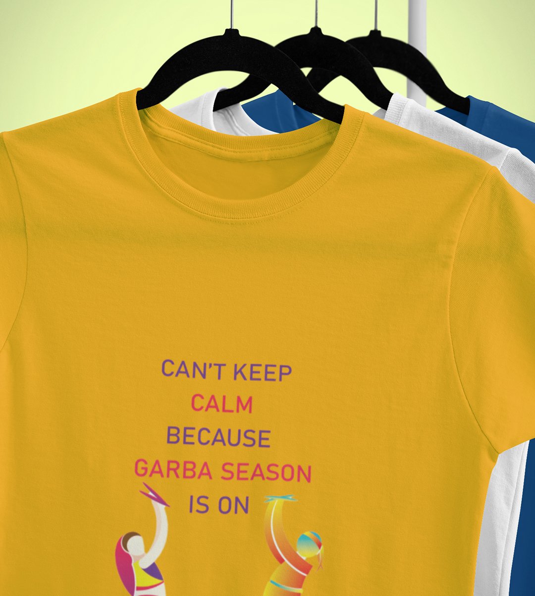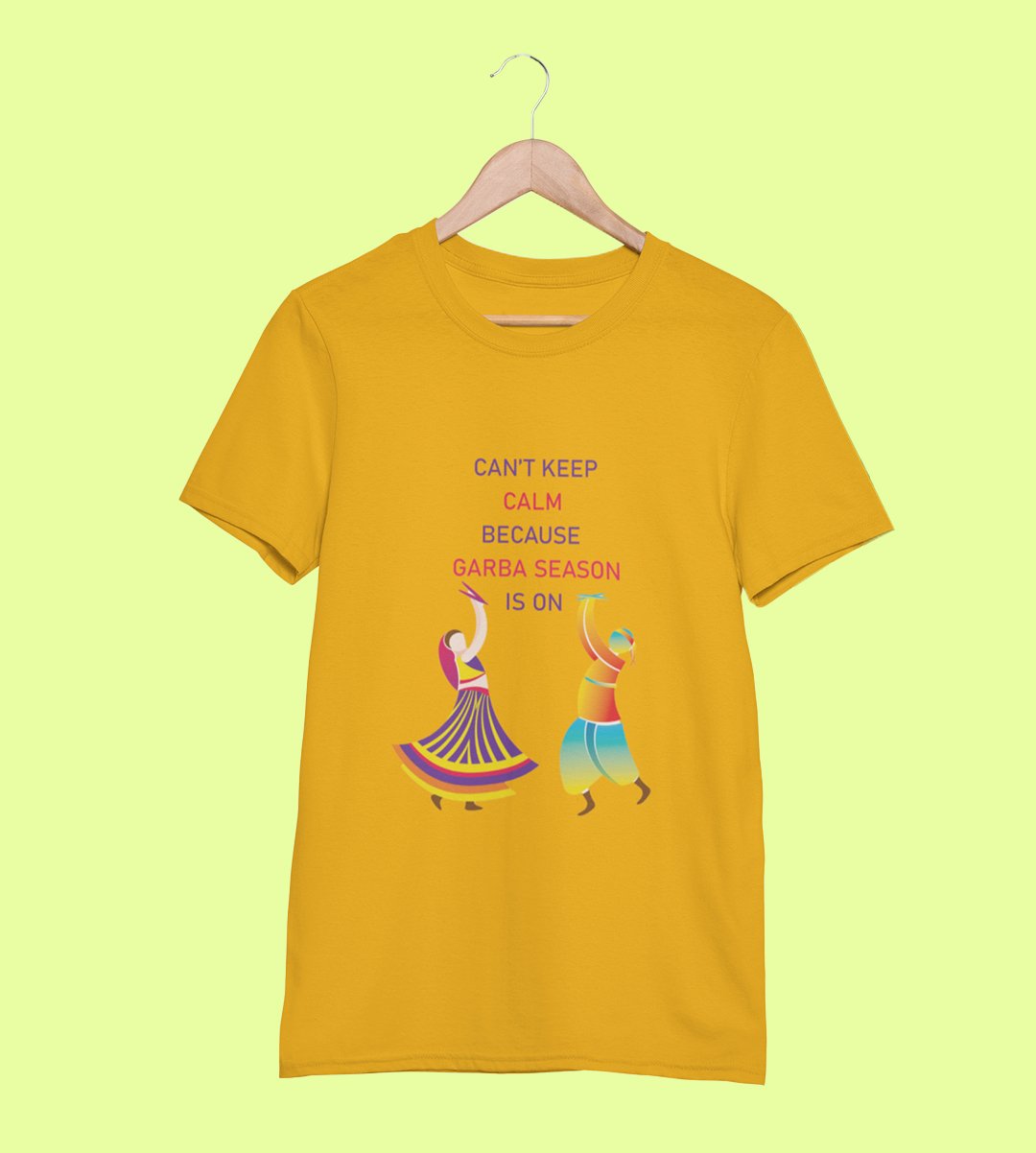 Can't keep calm printed unisex adults round neck cotton half-sleeve yellow tshirt specially for Navratri festival/ Durga puja
