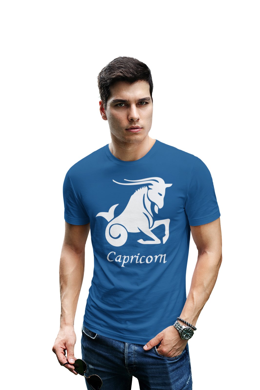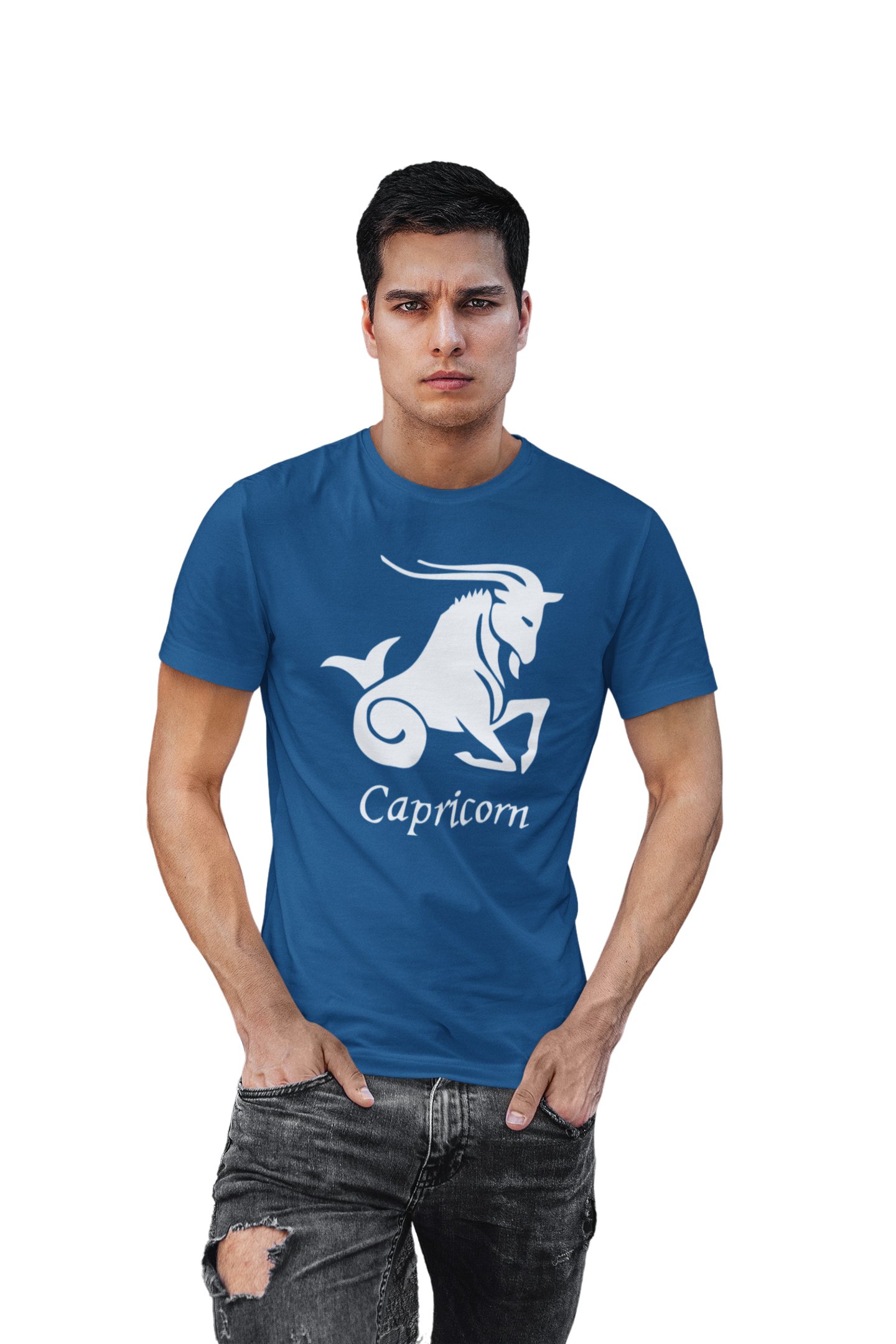 Capricorn (BG White)(Blue T) - Printed Zodiac Sign Tshirts - Made especially for astrology lovers people