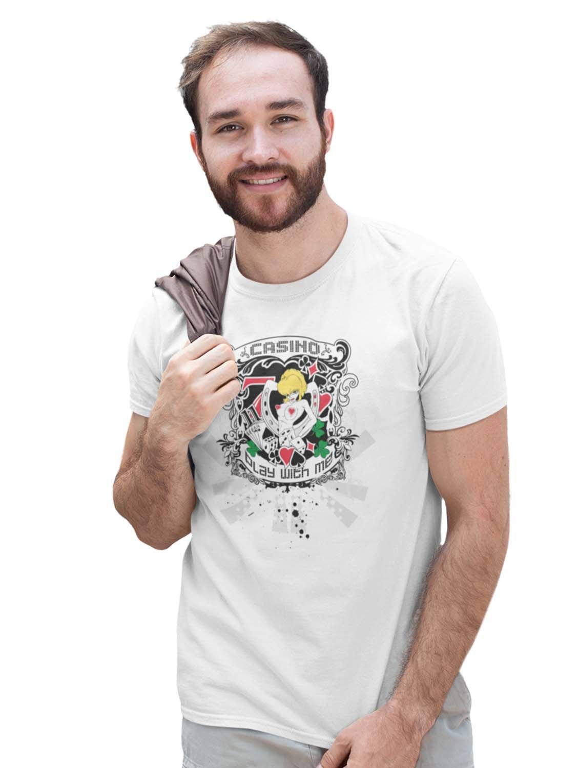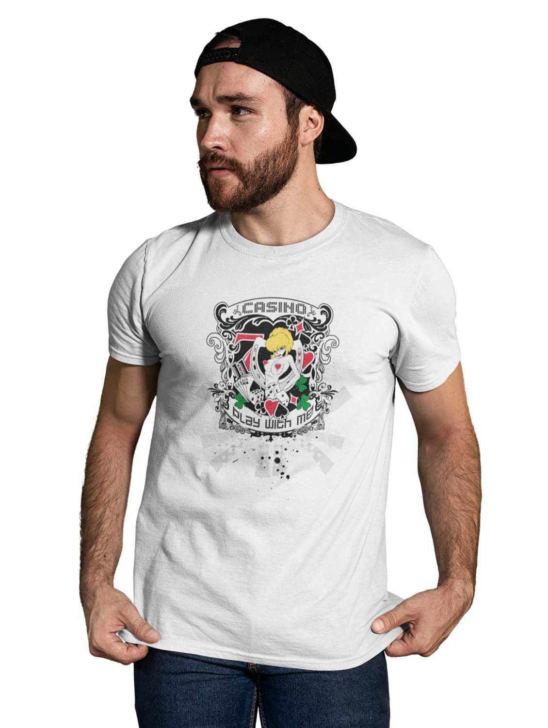 Casino Queen White Round Neck Cotton Half Sleeved T-Shirt with Printed Graphics