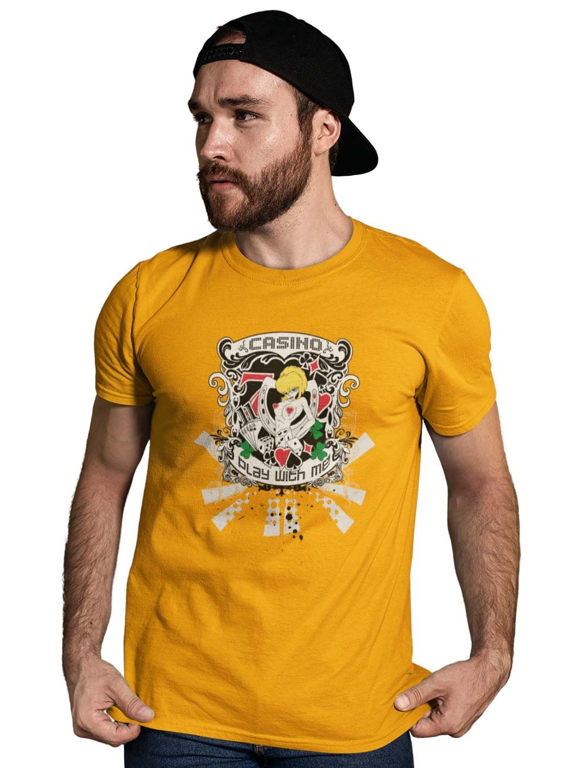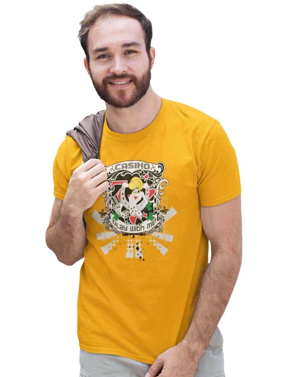 Casino Queen Yellow Round Neck Cotton Half Sleeved T-Shirt with Printed Graphics