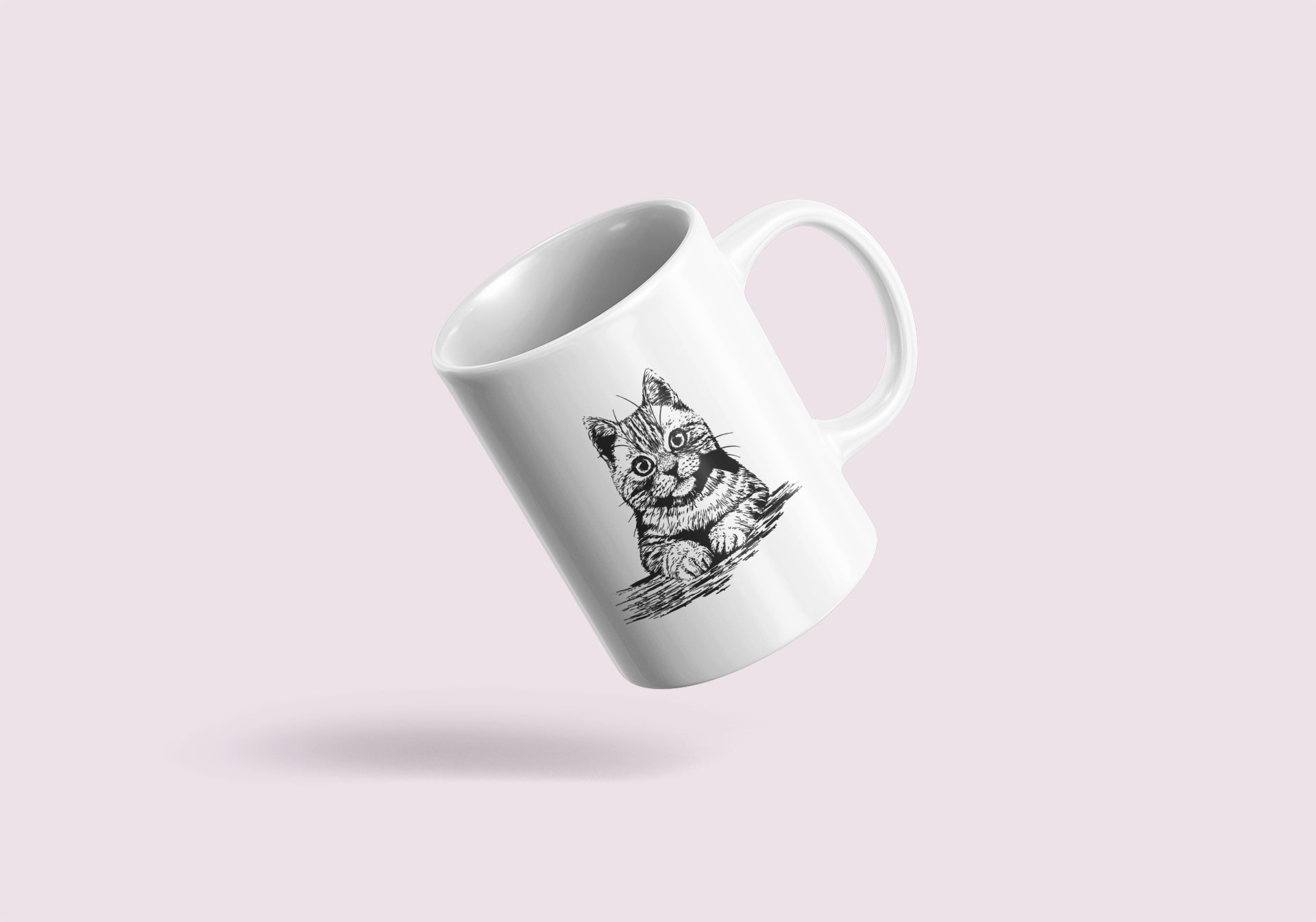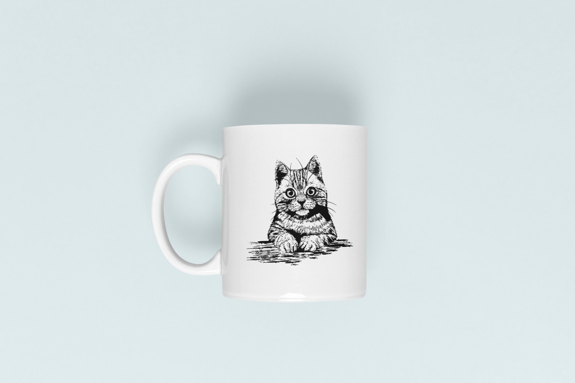 Cat Eyes- line art themed printed ceramic white coffee and tea mugs/ cups