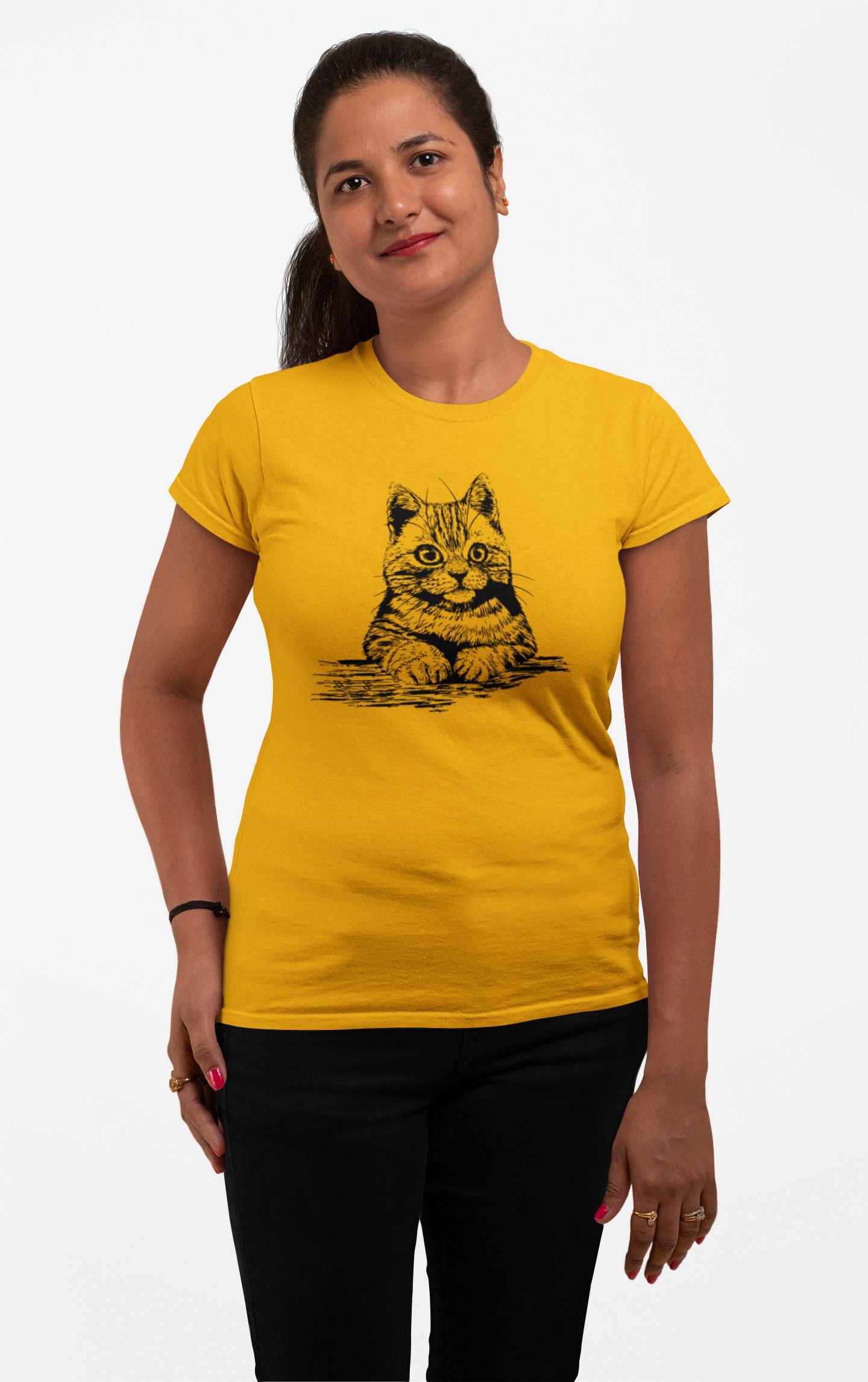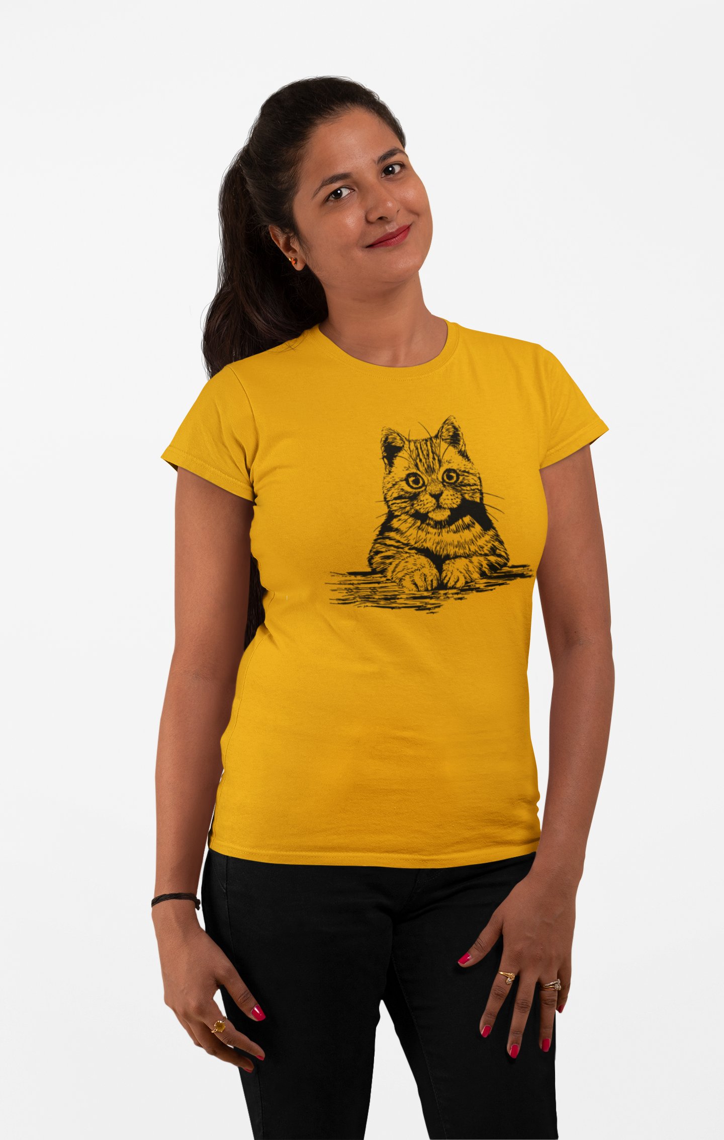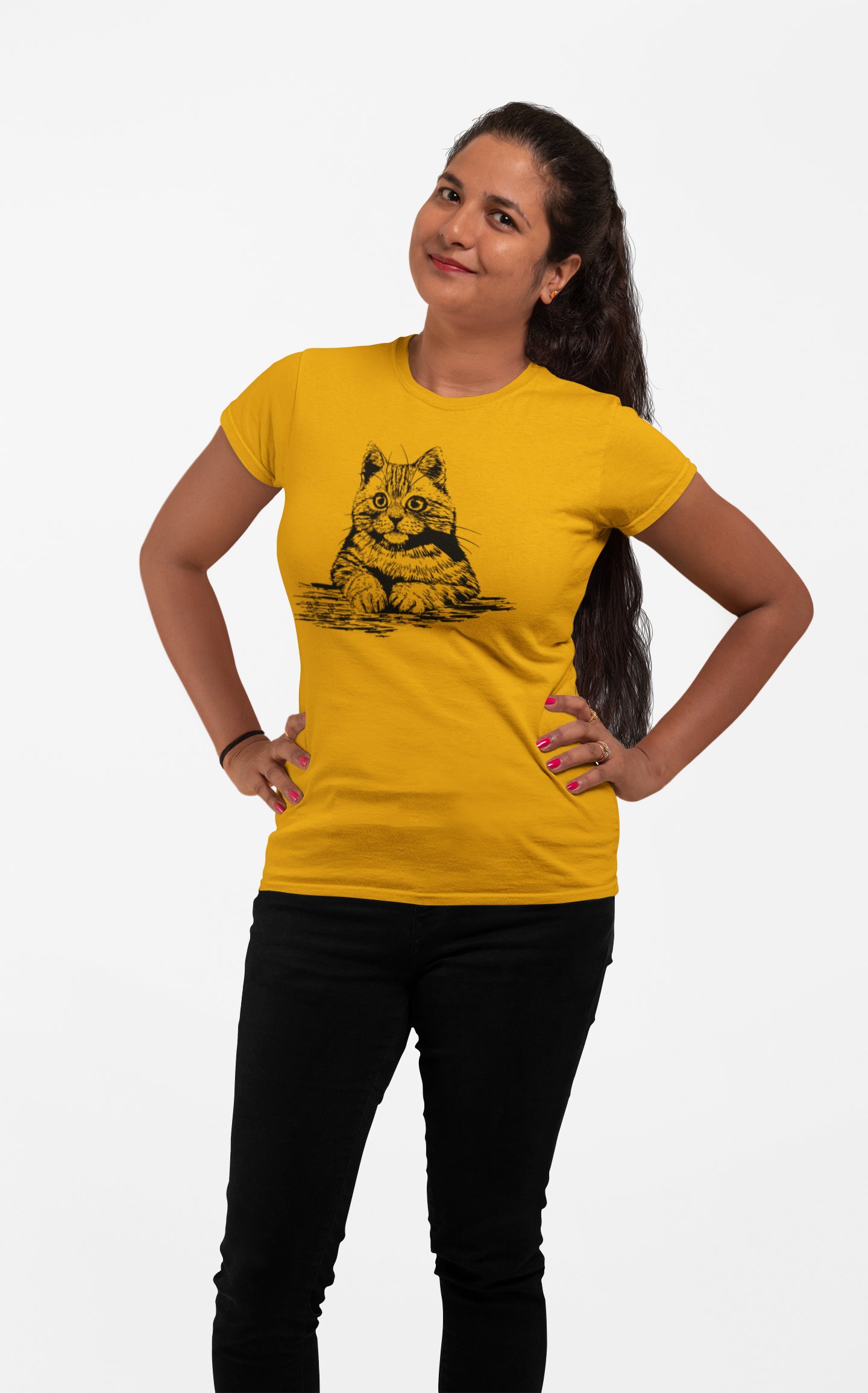 Cat Eyes - Line Art for Female - Half Sleeves T-shirt