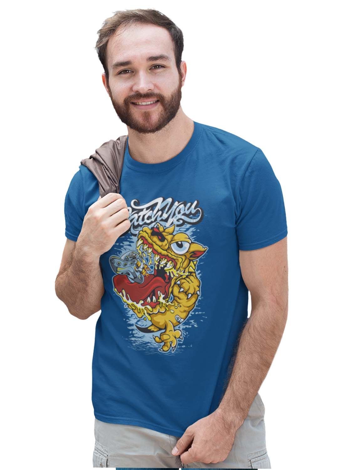 Coscoot Blue Round Neck Cotton Half Sleeved T-Shirt with Printed Graphics