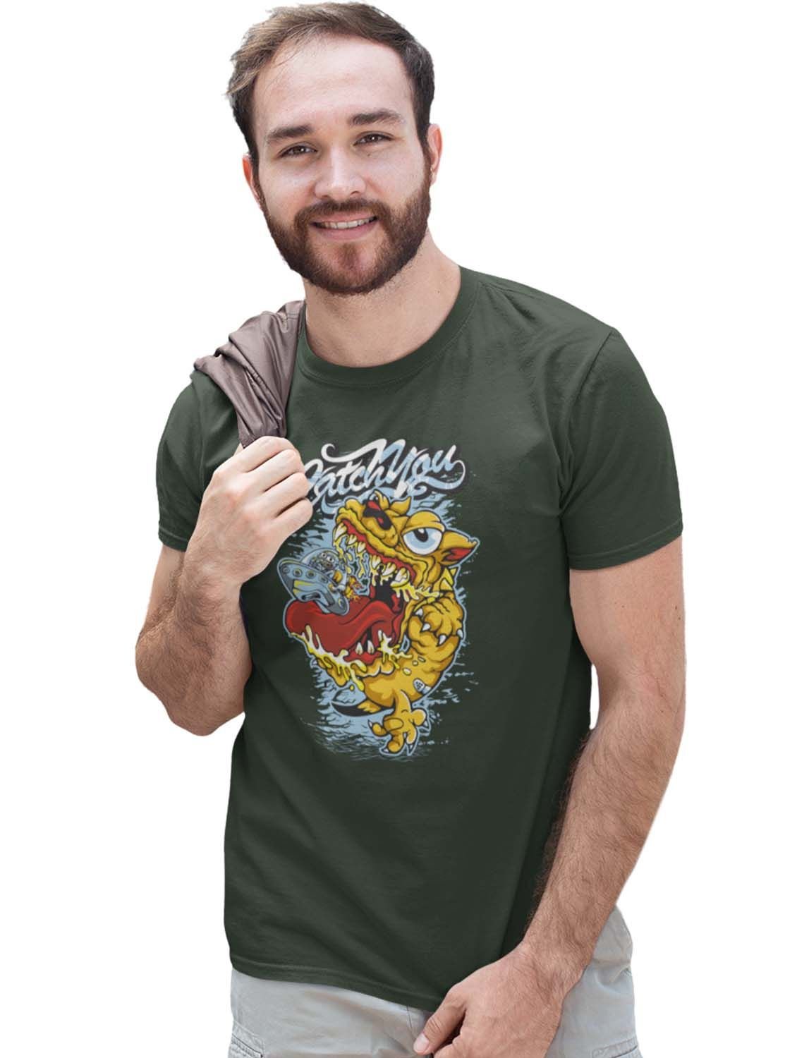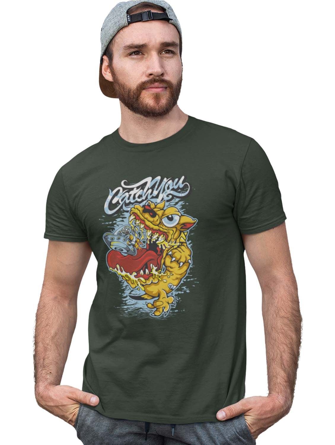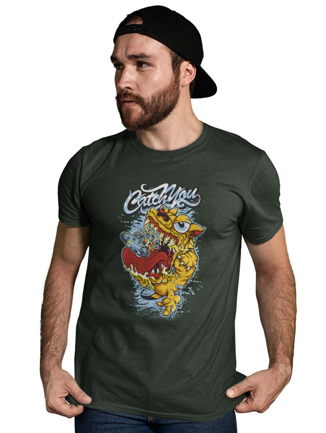 Hungry Dog Green Round Neck Cotton Half Sleeved T-Shirt with Printed Graphics