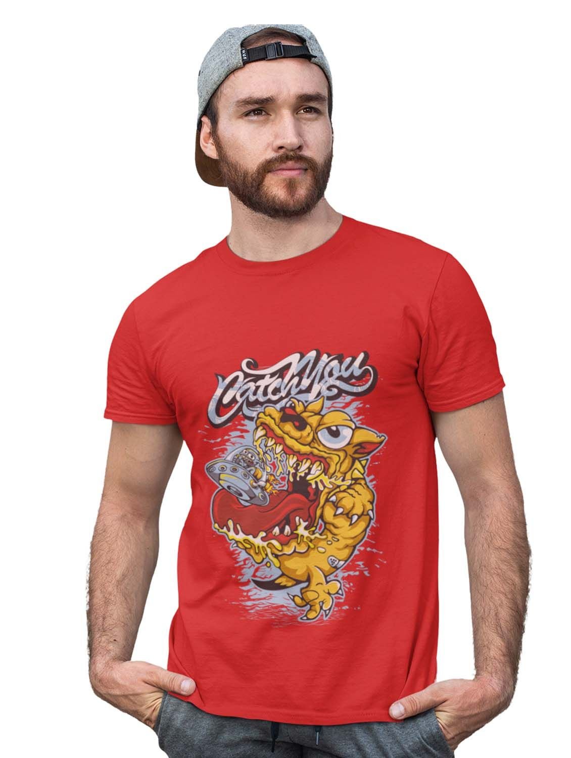 Hungry Dog Red Round Neck Cotton Half Sleeved T-Shirt with Printed Graphics
