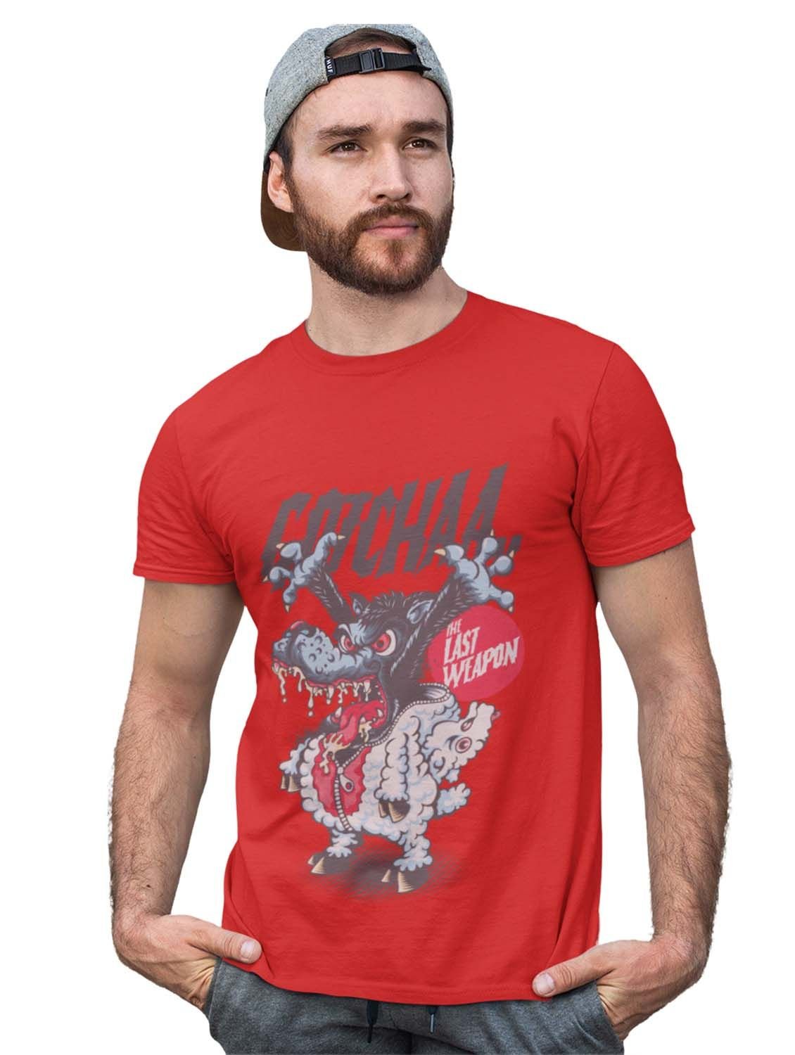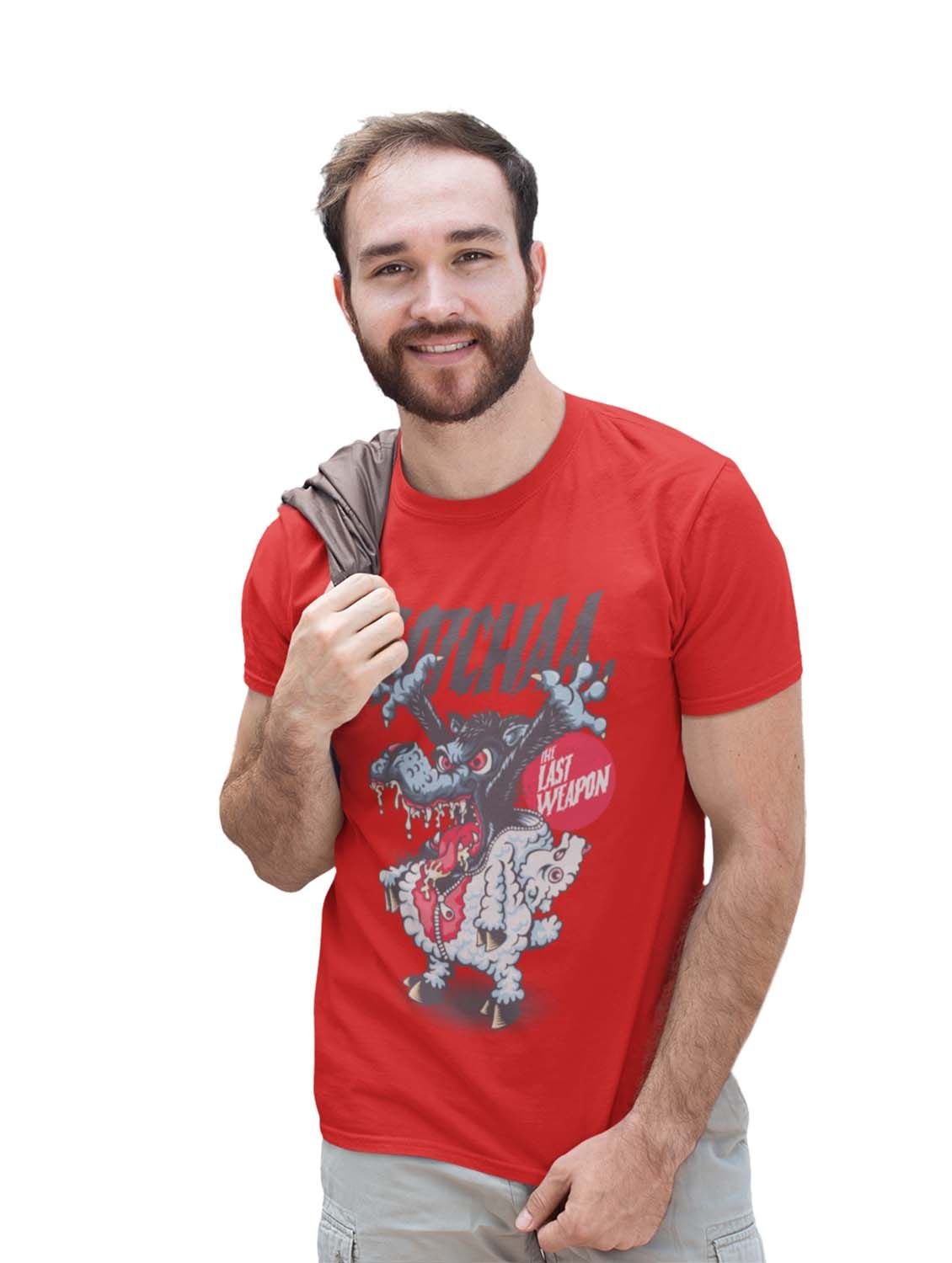 The Last Weapon Red Round Neck Cotton Half Sleeved T-Shirt with Printed Graphics