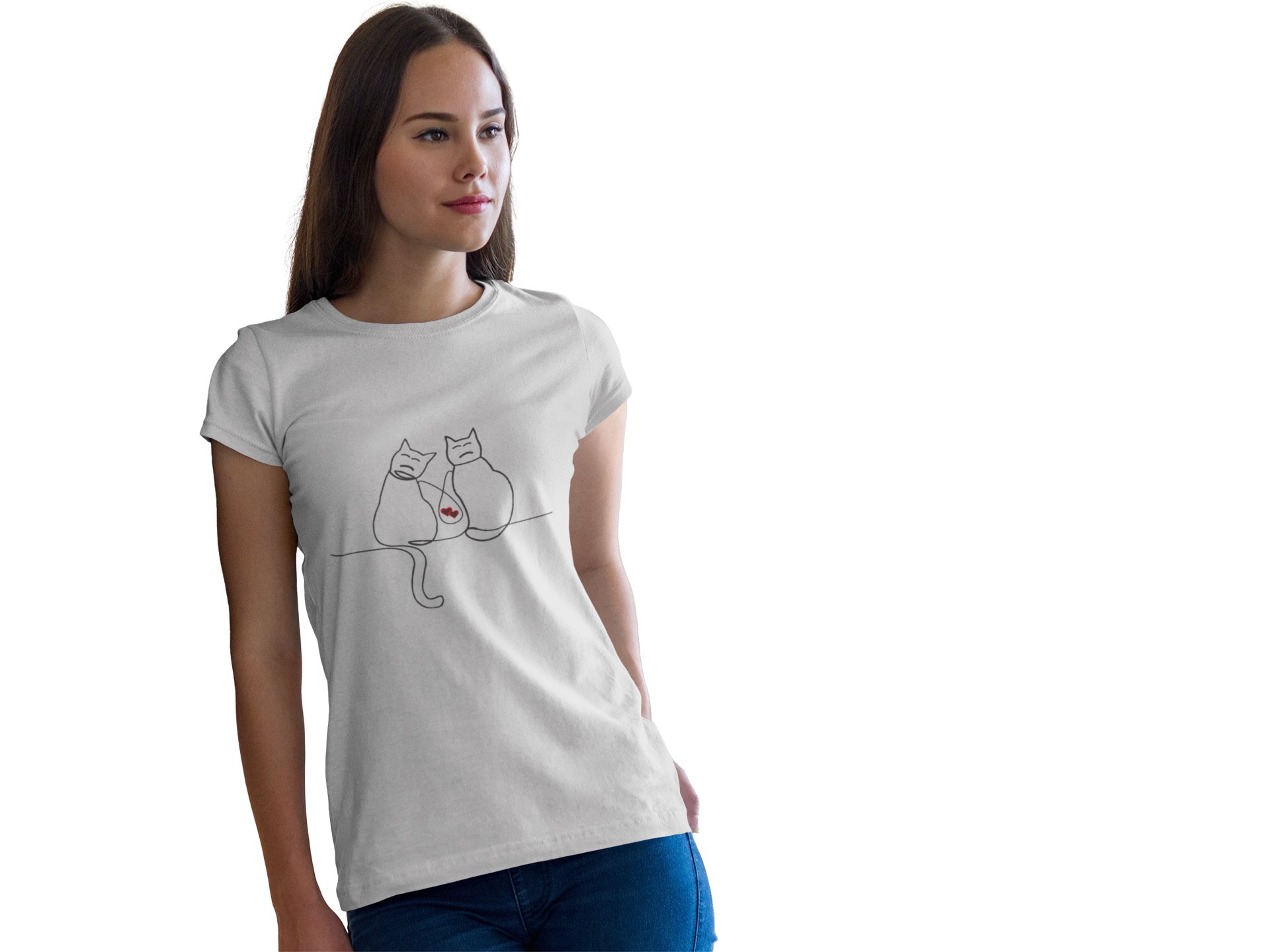 Cats - Line Art for Female - Half Sleeves T-shirt