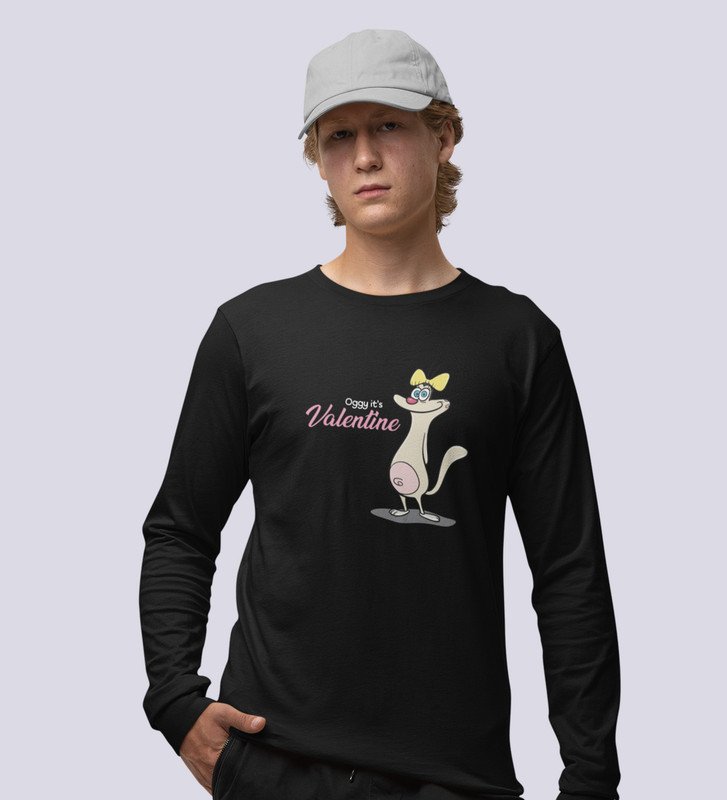 Cats Love Valentines: Attractive Printed (black) Full Sleeve T-Shirt For Singles