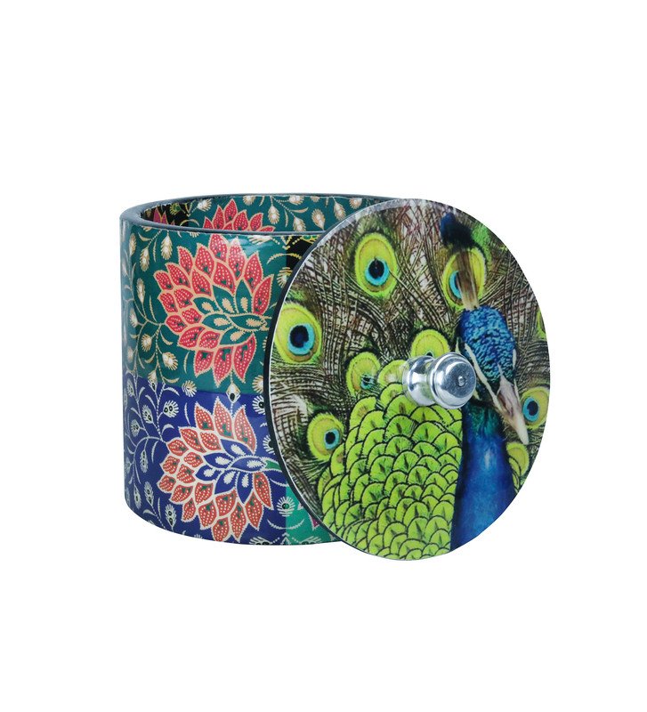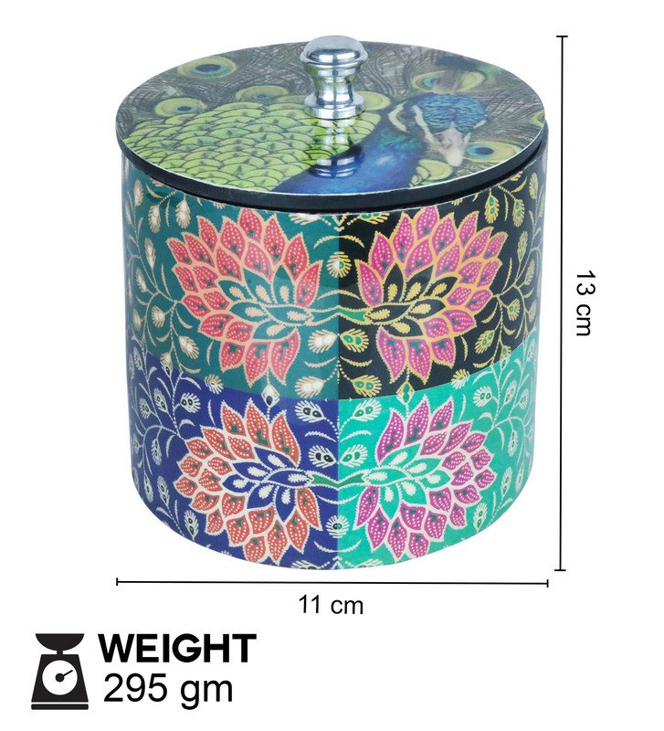 Minakari Hand Crafted Floral Painted Minakari Multi Utility Storage Pin On Tin Jar For Kitchen